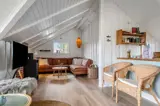 Die Wohnfläche beträgt 68 m² und ist optimal mit offenen Wohnbereichen und guten Schlafmöglichkeiten genutzt. Neues Badezimmer. Die Wärmepumpe sorgt im Sommer wie im Winter für ein angenehmes Raumklima. Im Winter kann mit dem Kaminofen zusätzlich geheizt werden. Brennholz kann vor Ort gekauft werden. Es gibt Internet, sodass Streaming und Homeoffice möglich sind.