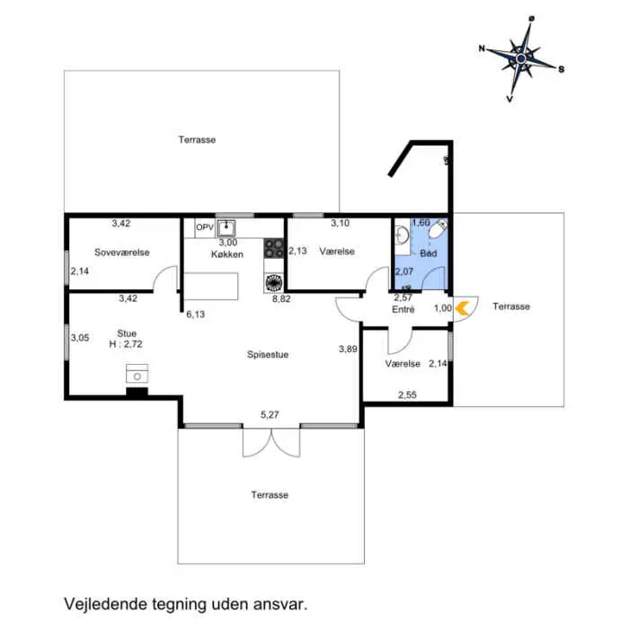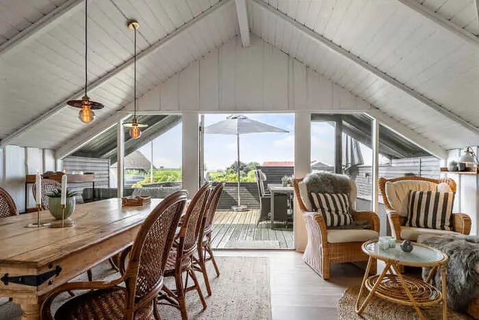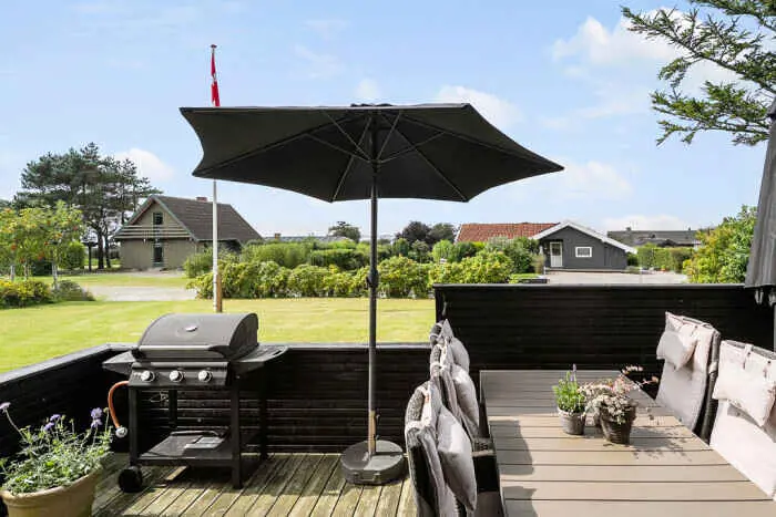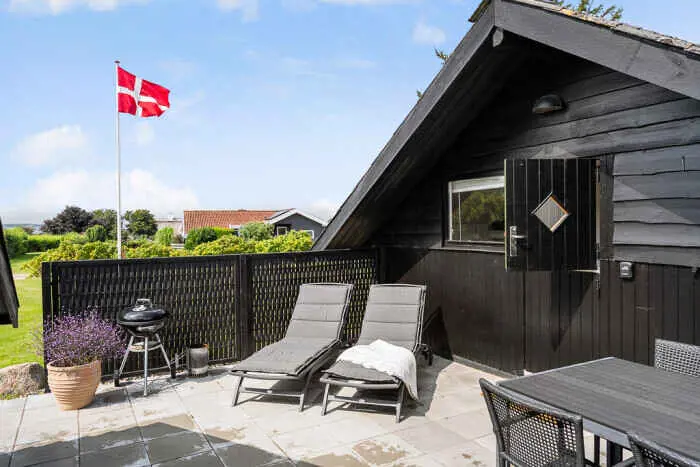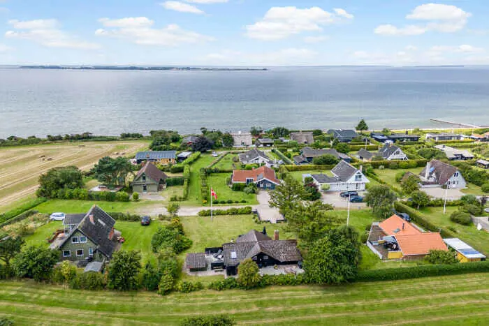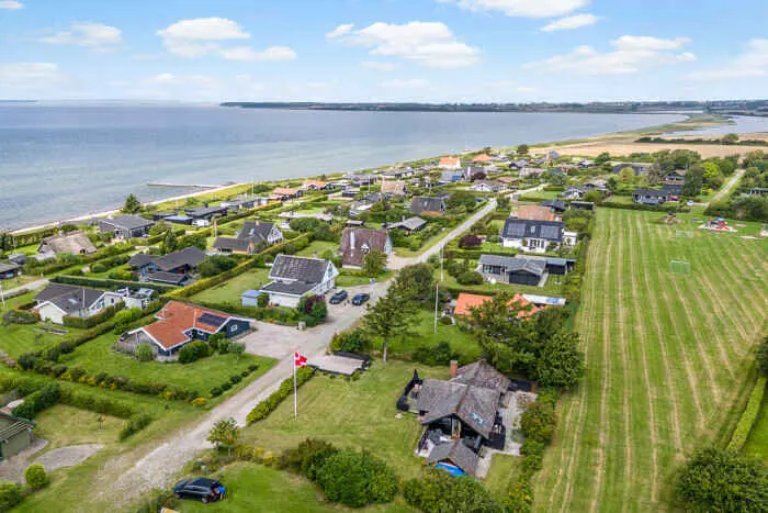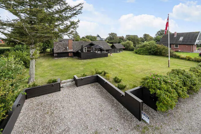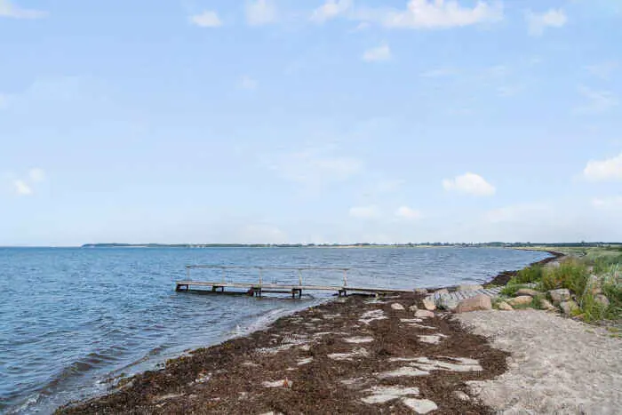 Das große Grundstück bietet viel Platz für Spiel und Aktivitäten. Kinder und Hund können sich im teilweise eingezäunten Garten austoben, während die Erwachsenen die Ruhe auf einer der drei schönen Terrassen genießen. Zwei davon bieten Blick auf Assens, Bogø und die offene Landschaft. Direkter Zugang zu einem großen Spielplatz und einem Fußballfeld.