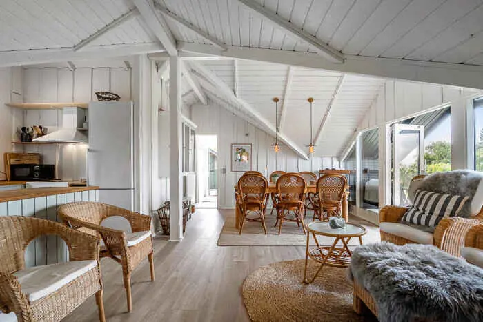 Der nahegelegene Strand ist flach und kinderfreundlich. Weicher Sand und ruhiges Wasser – perfekt zum Baden, Sandburgen bauen oder für lange Spaziergänge entlang der Küste.