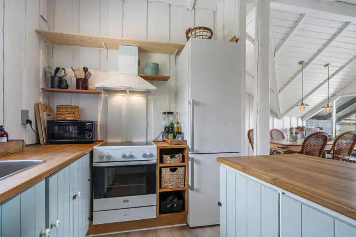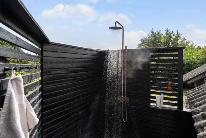 Das Haus verfügt außerdem über eine Außendusche mit warmem und kaltem Wasser, ideal zum Abkühlen im Sommer oder zum Abspülen von Sand nach dem Baden.