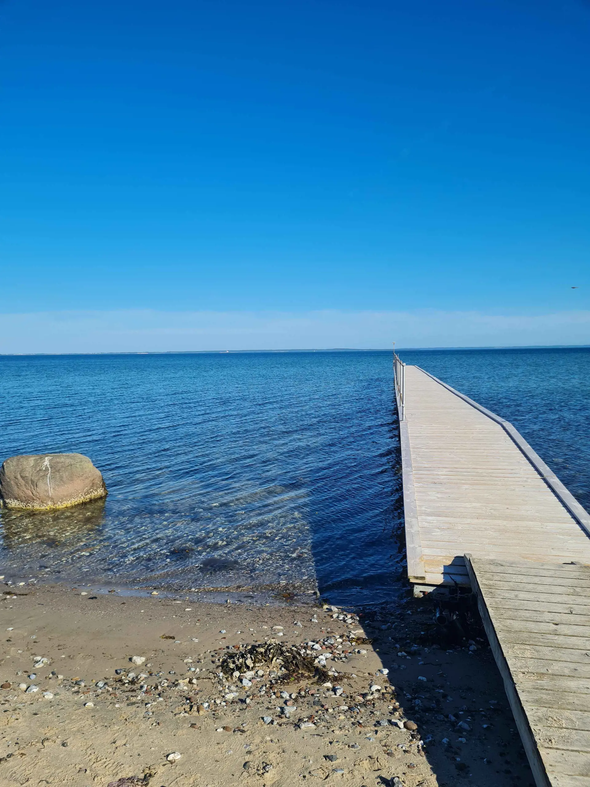 Vom Haus aus kann man das Meer sehen, und ein kurzer Spaziergang führt zum Strand mit Badesteg im Sommer. Es gibt viel Platz, um die Natur zu genießen oder mit dem Hund spazieren zu gehen, der hier willkommen ist.