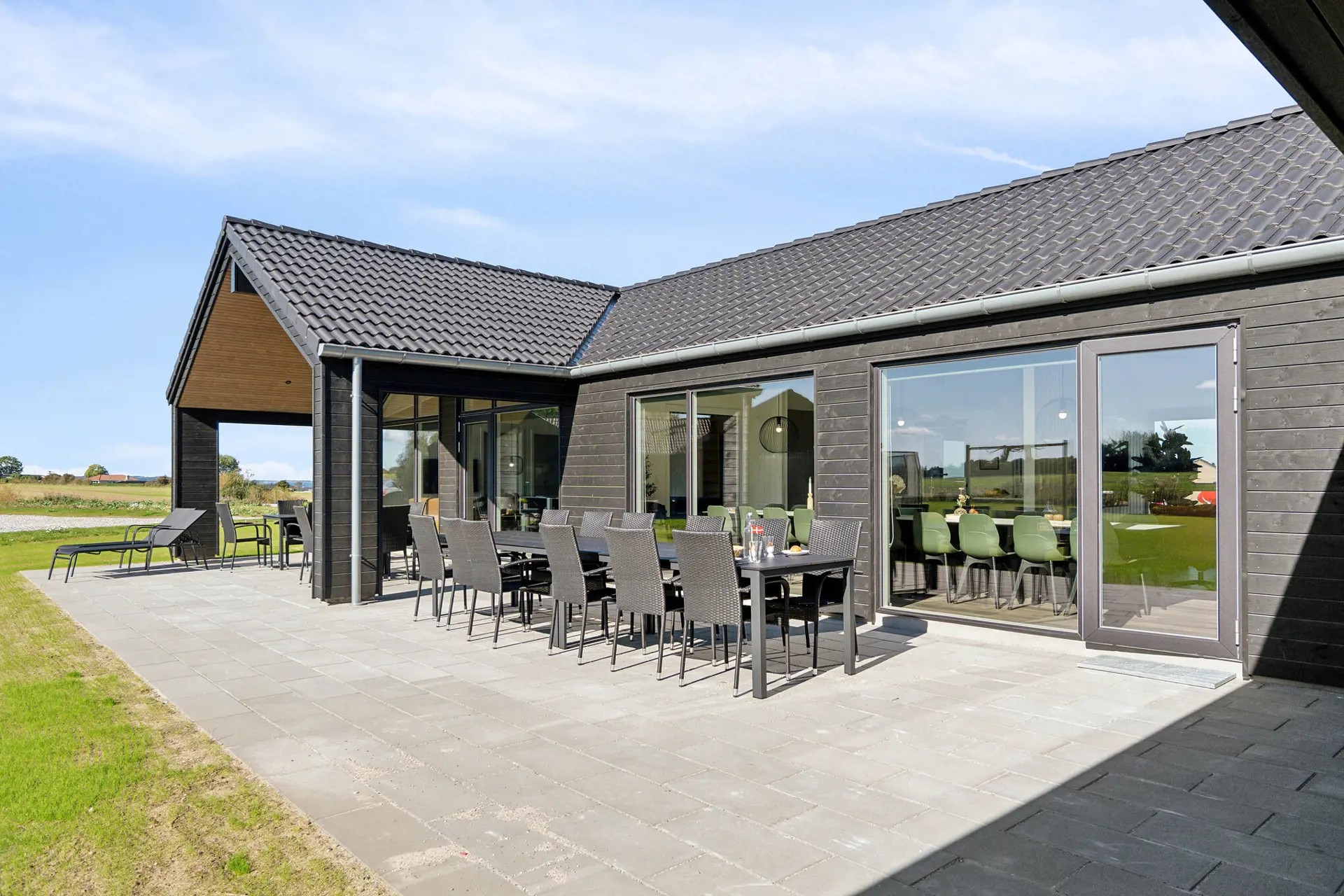 Dieses moderne und großzügige Ferienhaus nahe Skåstrup Strand bietet Platz für bis zu 20 Personen und ist ideal für Familienurlaube, Freundetreffen oder Firmenveranstaltungen. Es verfügt über acht Schlafzimmer, vier kindgerechte Schlafplätze im Dachboden sowie vier Badezimmer, aufgeteilt in zwei Schlafbereiche für mehr Privatsphäre. Der zentrale Wohn-Essbereich mit Kaminofen, langer Tafel und gut ausgestatteter Küche mit zwei Öfen und Spülmaschinen lädt zum Beisammensein ein. Für Unterhaltung sorgen ein Aktivitätsraum mit Spieltischen, ein Heimkino mit Projektor und ein Poolbereich mit Gegenstromanlage und Rutsche. Draußen warten Whirlpool, Sauna, Grillplatz, Trampolin und Schaukeln. Die Nähe zum Strand und Ausflugsmöglichkeiten wie das charmante Bogense machen das Haus das ganze Jahr über zu einem perfekten Urlaubsort.