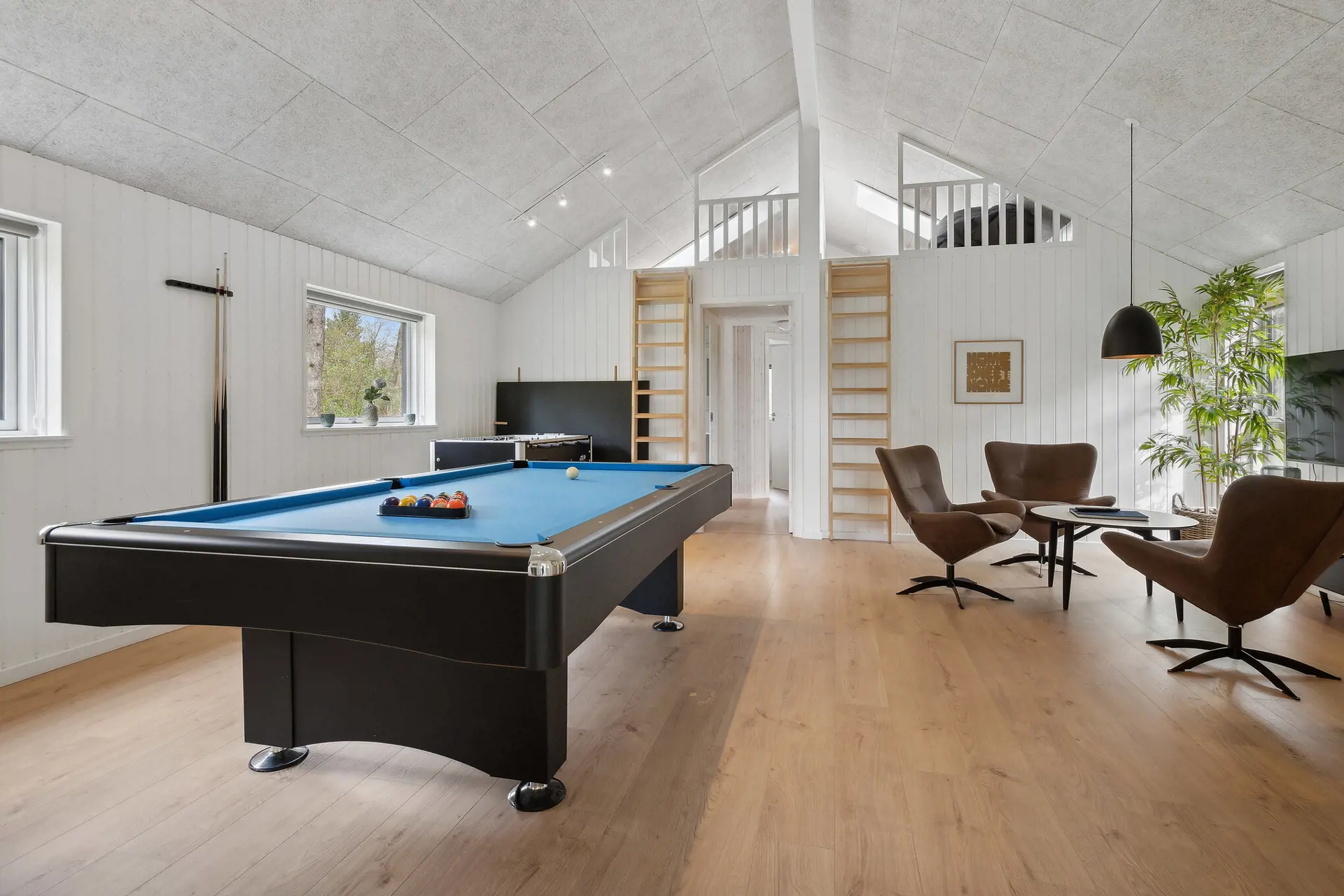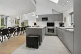 Mit Meerblick vom Außenwhirlpool und nur 600 Meter vom Strand entfernt bietet dieses großzügige Sammenhus™ ideale Voraussetzungen für Urlaub zu jeder Jahreszeit. Das Haus verfügt über einen Innenpool mit Rutsche, einen großen Aktivitätsraum mit Billard, Tischtennis, Tischfußball und PlayStation 5 sowie einen hellen Wohnbereich, in dem Küche und Wohnzimmer zum gemeinsamen Kochen und Entspannen einladen. Draußen erwarten Sie ein Wellnessbereich mit Whirlpool, Sauna und Außendusche sowie eine große Terrasse mit Grill und Heizstrahlern. Der Garten bietet Trampolin und Schaukel für Kinder. Die Schlafplätze verteilen sich auf 6 Schlafzimmer und 4 Plätze im offenen Schlafboden. Mit 3 Badezimmern ist auch bei voller Belegung hoher Komfort garantiert. Ruhige Lage nahe Skåstrup Strand und Bogense.