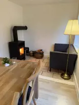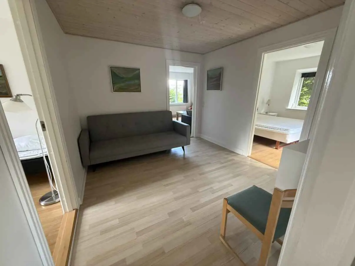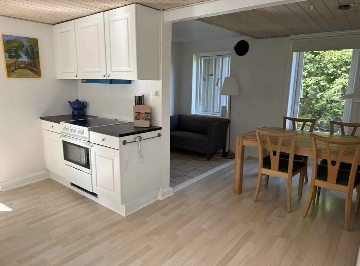 Das Herzstück des Hofes ist das gemütliche Küchen-Esszimmer, ein geselliger Treffpunkt, an dem man gemeinsam essen oder vor dem warmen Holzofen entspannen kann, was an kühlen Tagen eine besondere Atmosphäre schafft. Vom Familienzimmer aus hat man direkten Zugang zum Garten, der zu Aktivitäten im Freien einlädt und die Möglichkeit bietet, die Fünische Natur direkt vor der Tür zu genießen.