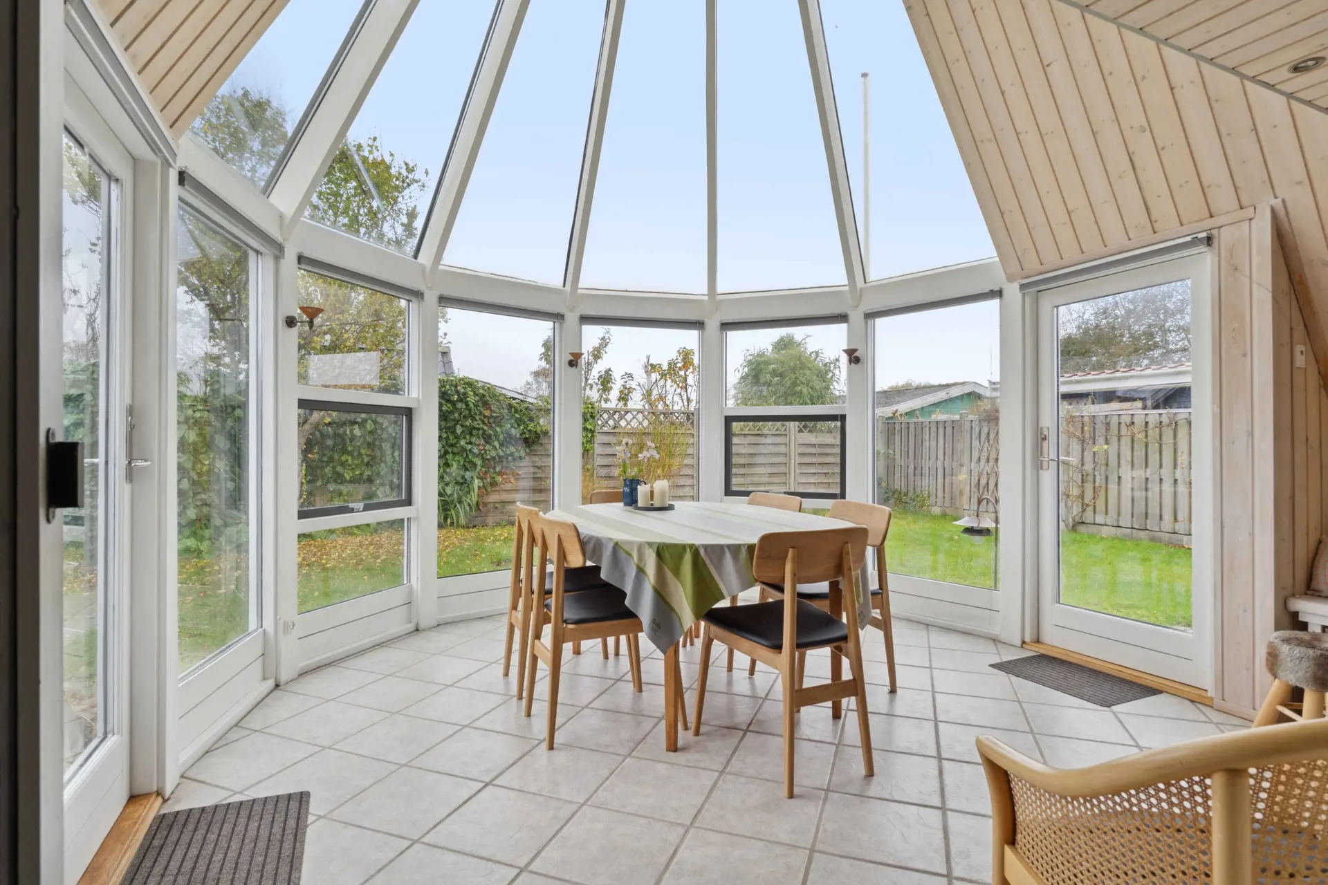 Vom Wohnzimmer im Obergeschoss hat man Meerblick. Hier lässt sich das wechselnde Licht des Tages beobachten und der Sonnenuntergang genießen. Im Erdgeschoss befindet sich der helle Wintergarten, der zu Mahlzeiten oder ruhigen Momenten einlädt – bei jedem Wetter.