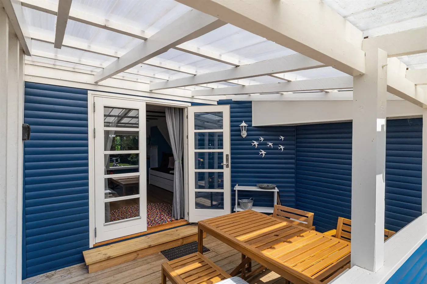 Das Haus wurde gerade im Jahr 2025 umfassend renoviert und präsentiert sich überall hell und einladend. Im Anschluss an das Wohnzimmer findest du eine gemütliche, überdachte Terrasse, davor eine neu angelegte Holzterrasse.