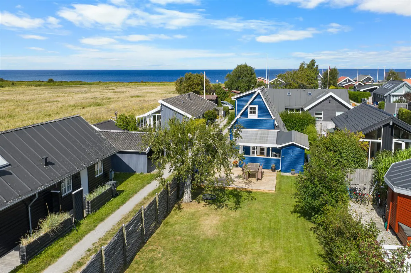 Die Ferienunterkunft liegt auf einem 446 m² großen Gartengrundstück. Die Entfernung zum Meer beträgt 150 m. Die nächste Einkaufsmöglichkeit liegt 2000 m entfernt. Es steht ein offenes Terrassenareal zur Verfügung. Außerdem gibt es überdachte Terrasse.Balkon im Obergeschoss. Schaukel.Lagerfeuerstelle. Es steht ein Grill zur Verfügung. Parkplatz auf dem Grundstück.