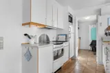 Die Küche ist mit Kühlschrank ausgestattet. Außerdem gibt es 4 Induktions-Kochzonen, Umluftofen, Mikrowelle sowie Geschirrspüler.