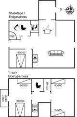 Die Schlafplätze verteilen sich auf 3 Schlafräume. 4 Schlafplätze in Doppelbetten. 3 Schlafplätze in Einzelbetten. Ferner steht ein Kinderbett zur Verfügung.