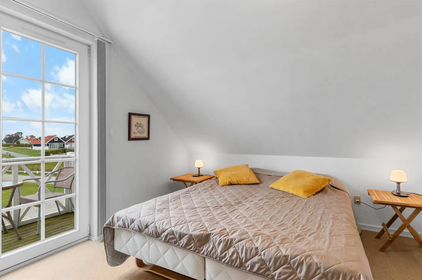 Die Schlafplätze verteilen sich auf 3 Schlafräume. 6 Schlafplätze in Doppelbetten. 2 Schlafplätze auf einer Doppelschlafcouch. 2 von diesen Schlafplätzen befinden sich im Wohnzimmer. Ferner steht ein Kinderbett zur Verfügung.