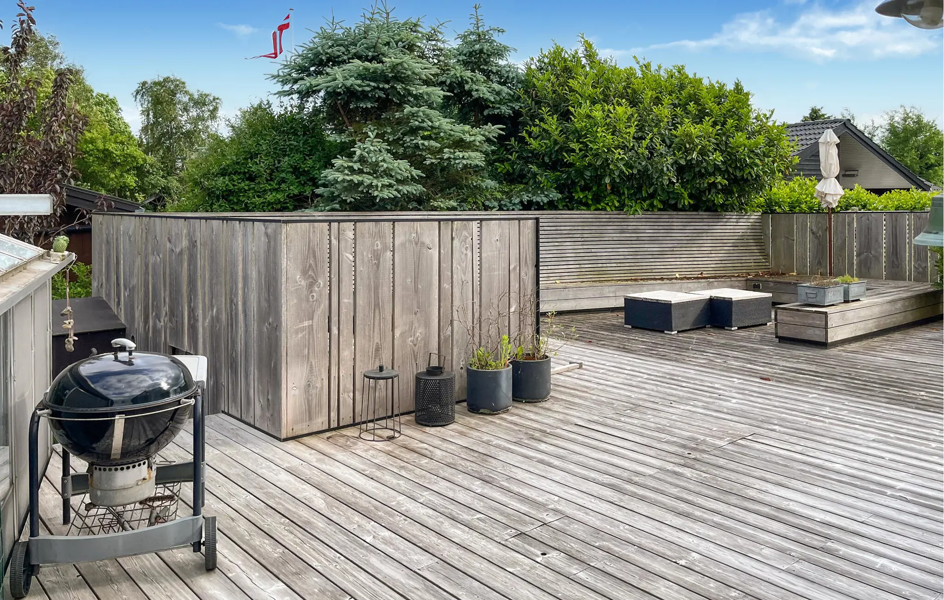 Die schöne Terrasse lädt zu einem ausgiebigen Frühstück im Sonnenschein ein. Genießen Sie die frische Luft und das viele Grün, das Sie umgibt. Suchen Sie sich ein Plätzchen zum Lesen oder planen Sie die Aktivitäten für den nächsten Tag, bevor Sie am Abend ein leckeres Grillessen zubereiten. Lassen Sie die Tag mit einem Glas Wein ausklingen, während die Sterne langsam aufziehen.