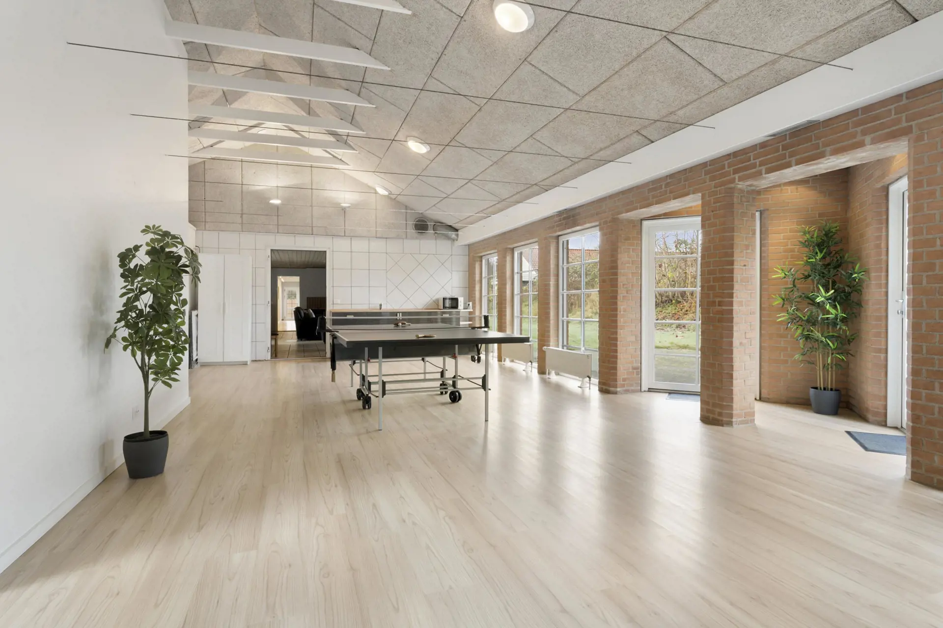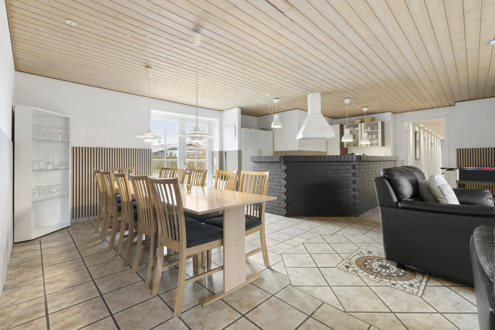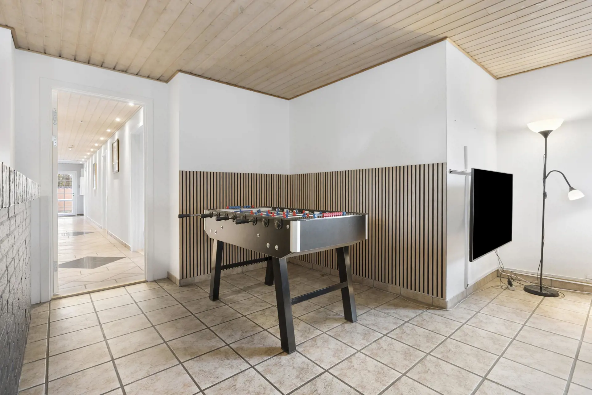 Verbringen Sie mit der ganzen Familie oder Freunden ein verlängertes Wochenende oder einen Urlaub in Vejlby Fed bei Middelfart. Das Ferienhaus Hovkrogvej bietet Platz für 16 Personen und verfügt über ein Wohnzimmer mit gemütlicher Sofaecke und Esstisch, sodass alle gemeinsam essen und die Zeit genießen können. Die Küche ist zum Wohnzimmer hin offen. Zusätzlich gibt es 6 Schlafzimmer mit Doppelbetten und 2 Schlafzimmer mit je 2 Einzelbetten. Alle Zimmer haben ein eigenes Bad mit WC. An Regentagen können Sie sich mit Tischfußball und Tischtennisplatte vergnügen oder in der Sauna und dem Whirlpool für 2 Personen entspannen. Das Haus bietet außerdem eine Terrasse mit Gartenmöbeln und Grill. Für größere Veranstaltungen können Sie das Haus zusammen mit dem Nachbarhaus Strandlyst und einem Partyzelt mieten. So finden bis zu 40 Übernachtungsgäste Platz.