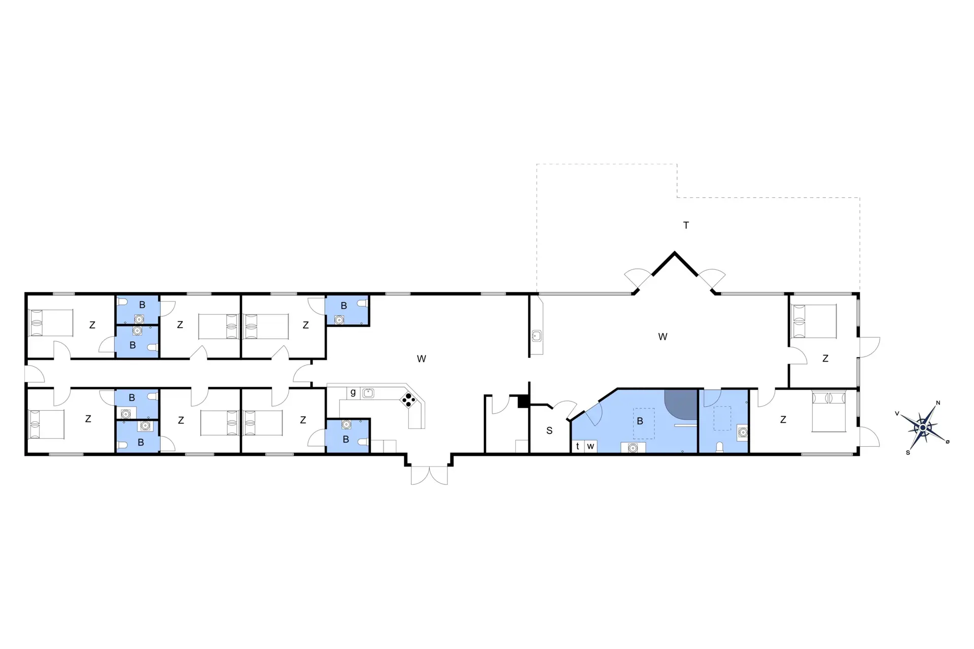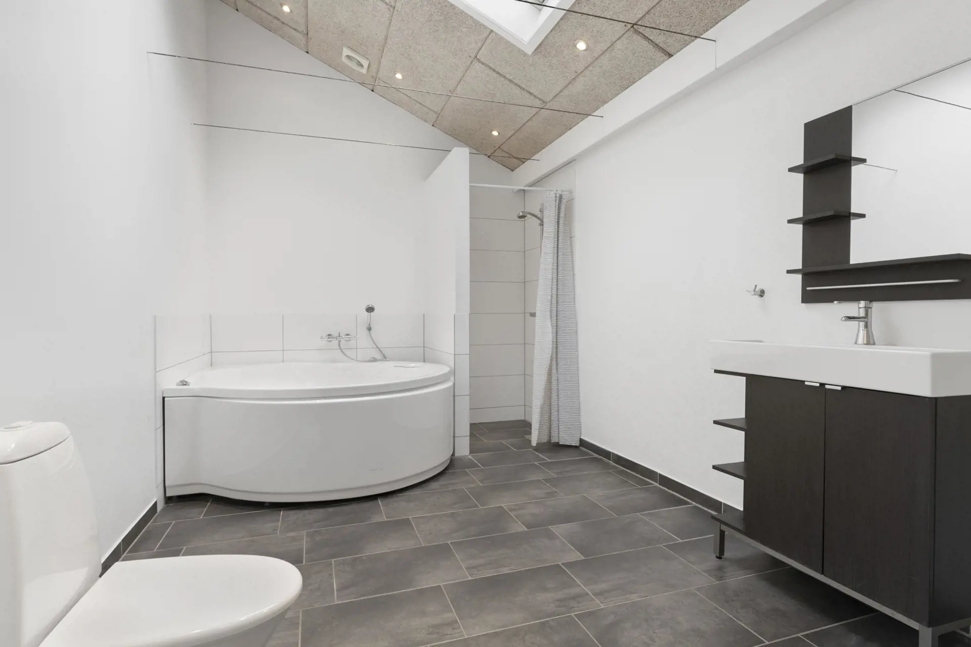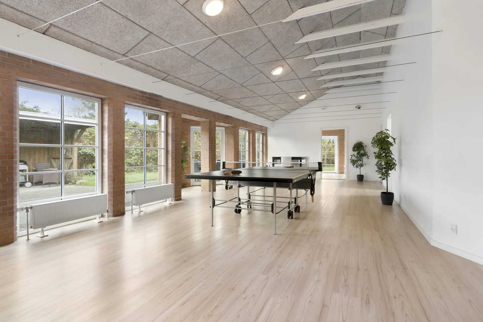 Verbringen Sie mit der ganzen Familie oder Freunden ein verlängertes Wochenende oder einen Urlaub in Vejlby Fed bei Middelfart. Das Ferienhaus Hovkrogvej bietet Platz für 16 Personen und verfügt über ein Wohnzimmer mit gemütlicher Sofaecke und Esstisch, sodass alle gemeinsam essen und die Zeit genießen können. Die Küche ist zum Wohnzimmer hin offen. Zusätzlich gibt es 6 Schlafzimmer mit Doppelbetten und 2 Schlafzimmer mit je 2 Einzelbetten. Alle Zimmer haben ein eigenes Bad mit WC. An Regentagen können Sie sich mit Tischfußball und Tischtennisplatte vergnügen oder in der Sauna und dem Whirlpool für 2 Personen entspannen. Das Haus bietet außerdem eine Terrasse mit Gartenmöbeln und Grill. Für größere Veranstaltungen können Sie das Haus zusammen mit dem Nachbarhaus Strandlyst und einem Partyzelt mieten. So finden bis zu 40 Übernachtungsgäste Platz.
