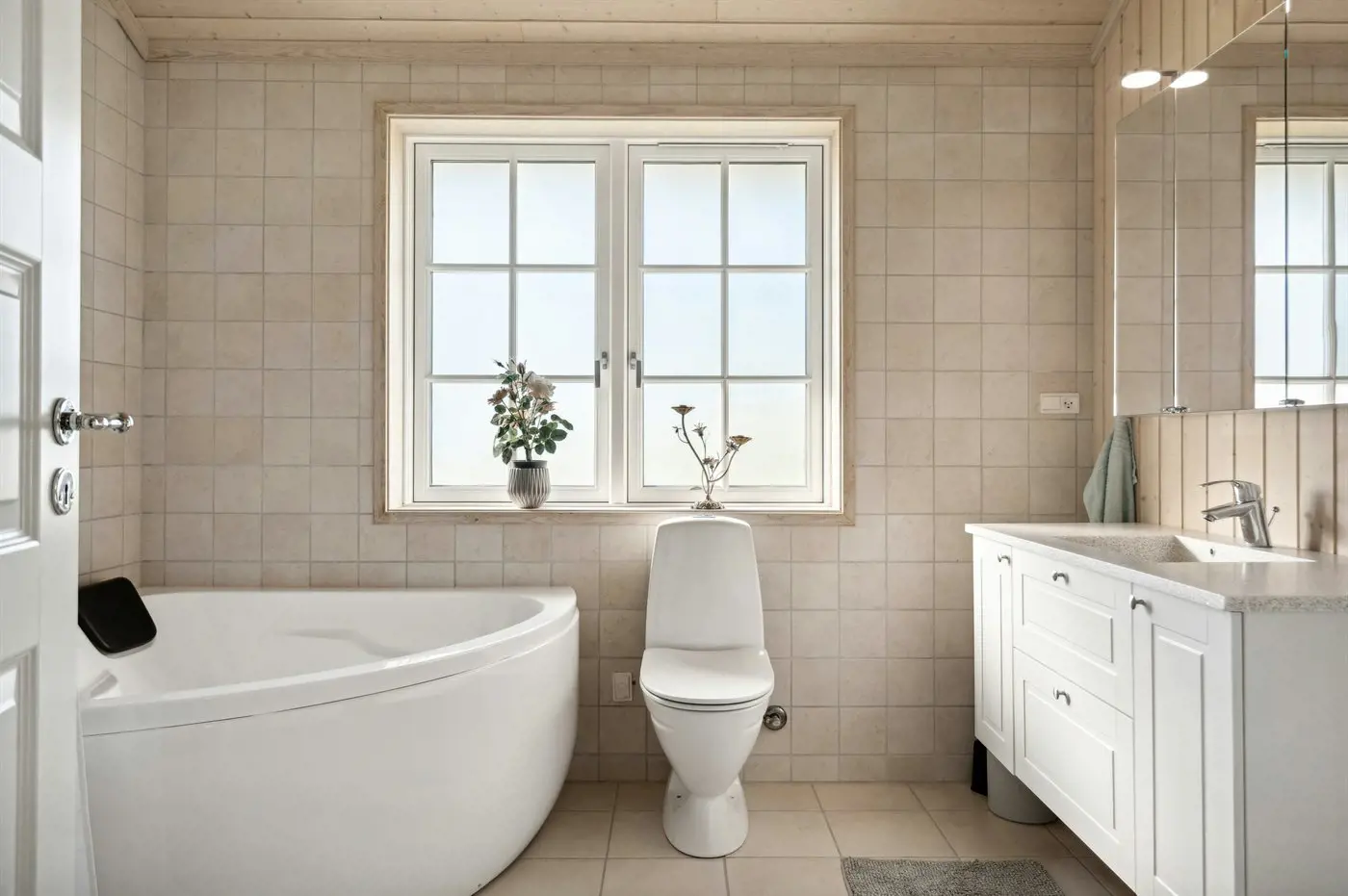 Es gibt 1 Badezimmer mit Fußbodenheizung, Duschnische sowie Badewanne und 1 Badezimmer mit Fußbodenheizung und Duschnische.