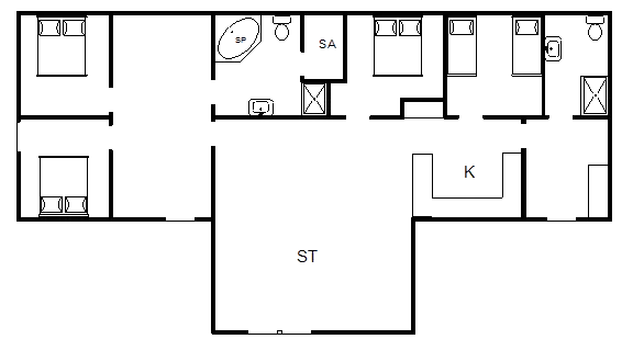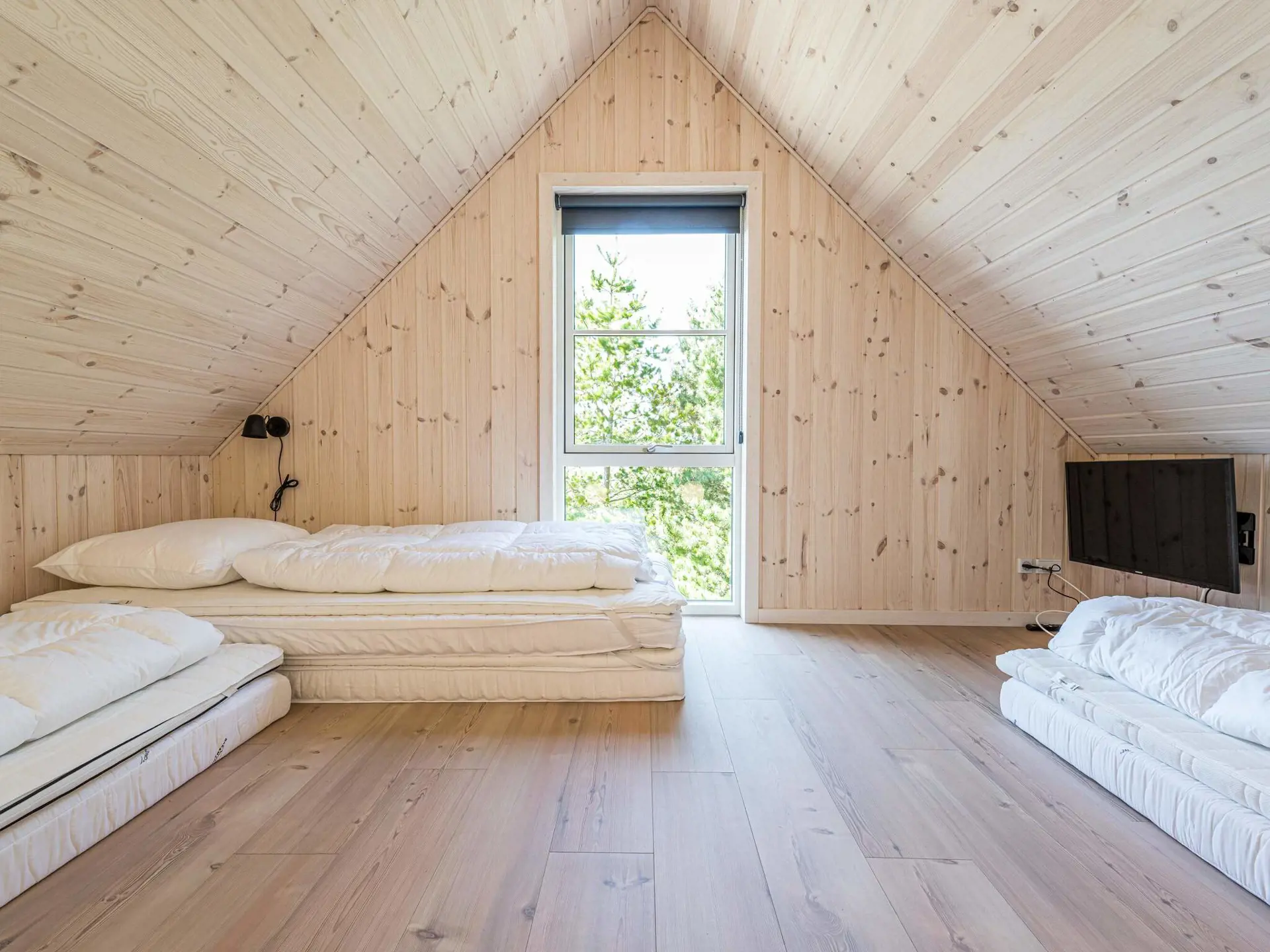Das Haus ist ansprechend eingerichtet und verfügt über vier Schlafzimmer: drei mit Doppelbetten und eines mit zwei Einzelbetten. Ein Loft unter der Dachschräge bietet drei zusätzliche Schlafplätze und einen Fernseher – ein idealer Rückzugsort für ältere Kinder. Zwei Badezimmer stehen zur Verfügung, eines davon mit Whirlpool und Sauna für wohltuende Wellnessmomente.