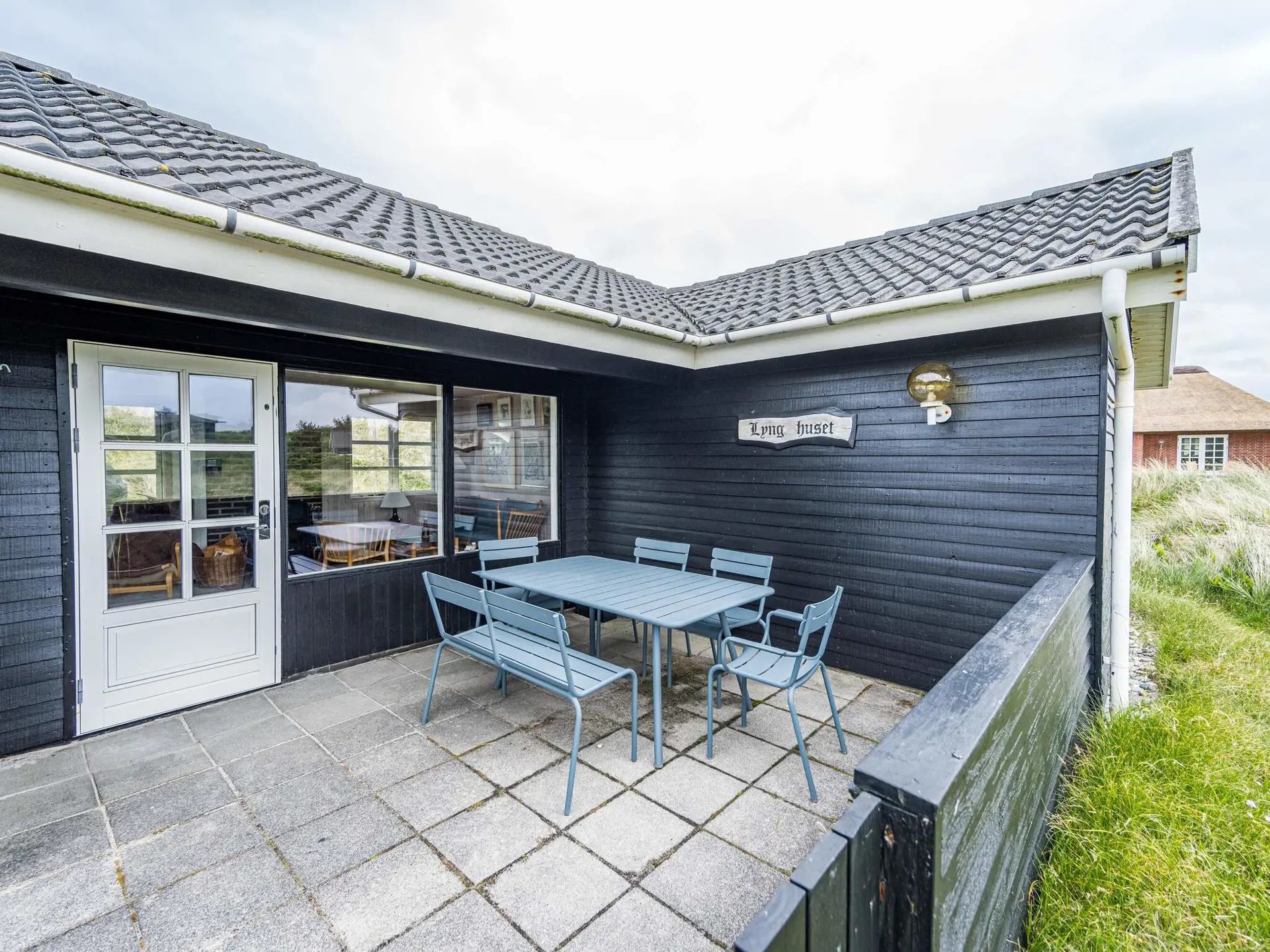 Vom Wohnzimmer aus erreicht man die abgeschirmte Terrassenfläche. Hinter dem Haus gibt es eine weitere Terrasse. In der Nähe des Ferienhauses führt ein kleiner Trampelpfad durch die Dünenlandschaft hinunter zum herrlichen Nordseestrand.