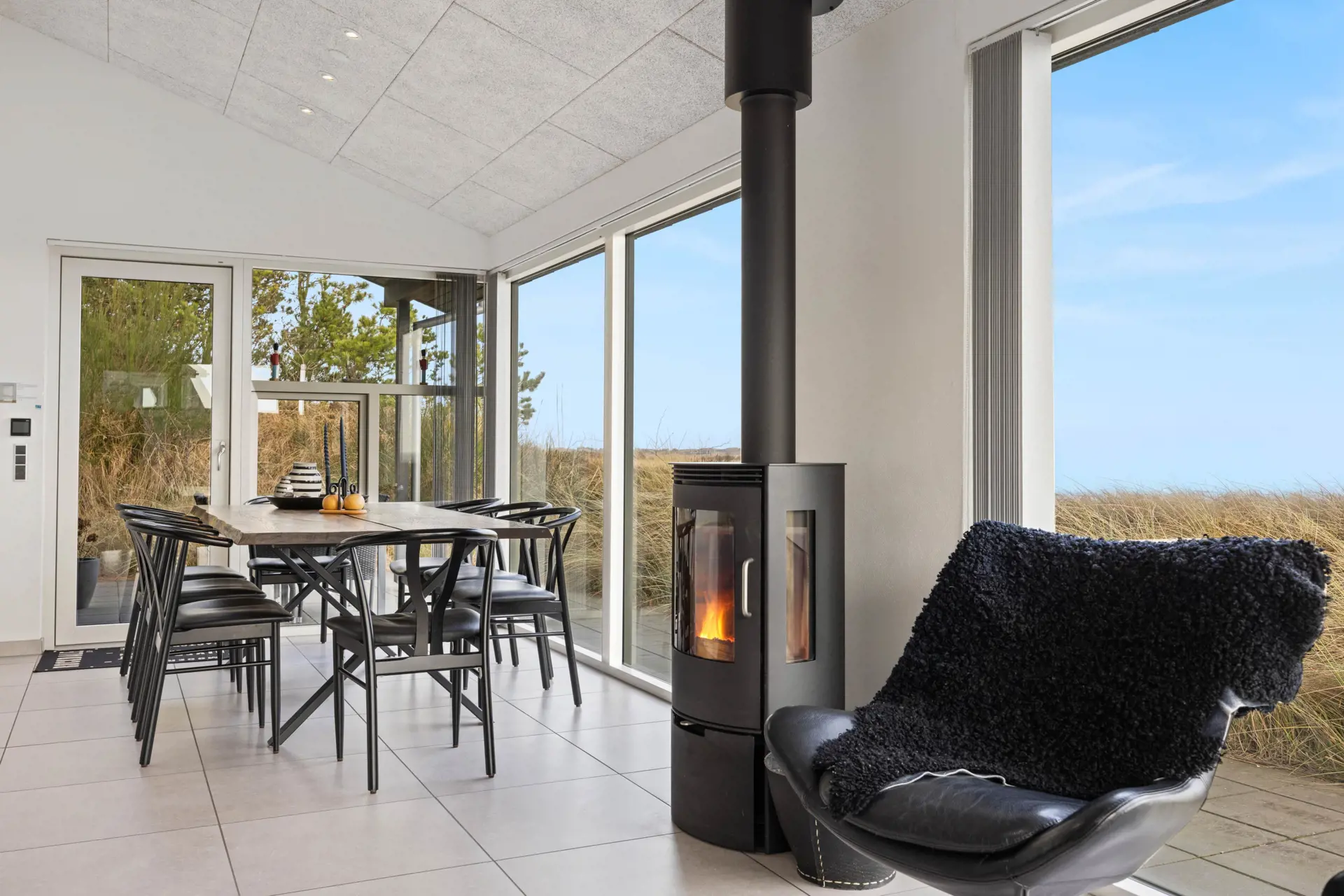 Auf großzügigen 176 Quadratmetern bietet euch dieses stilvolle Ferienhaus in Strandgodsvej 18 viel Raum für Entspannung, Gemeinsamkeit und Privatsphäre. 5 liebevoll eingerichtete Schlafzimmer mit komfortablen Doppelbetten bieten Platz für bis zu 10 Personen und sorgen für erholsame Nächte. Der helle Wohnbereich lädt mit Kaminofen zu hyggeligen Abenden ein, während Fußbodenheizung in den Badezimmern für wohlige Wärme sorgt. Zwei moderne Badezimmer – eines davon mit entspannendem Standwasser-Whirlpool – runden das komfortable Gesamtbild ab.
