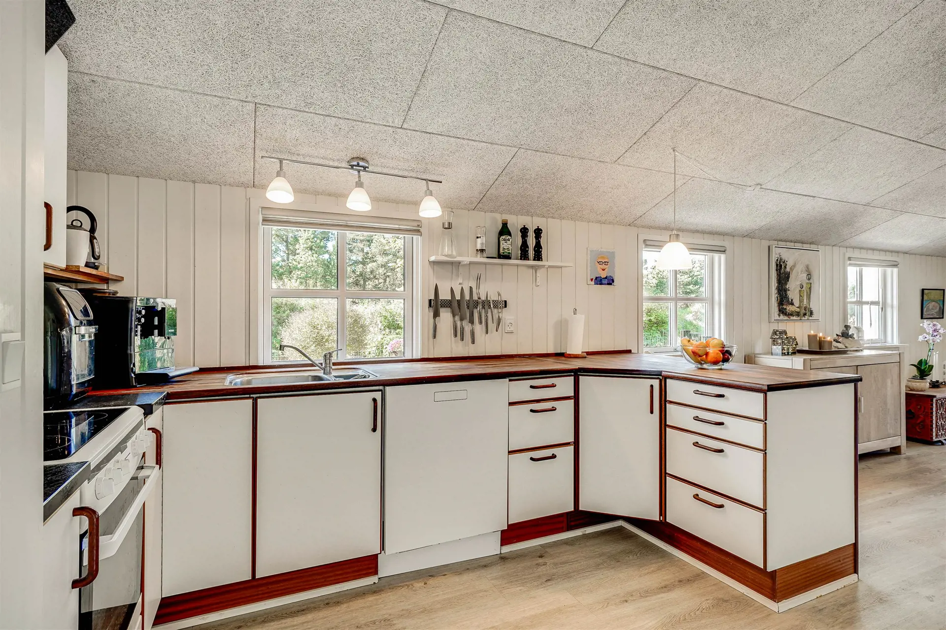 Die gut ausgestattete Küche verfügt über viele Annehmlichkeiten, darunter eine Spülmaschine, Mikrowelle und eine 100 Liter Gefriermöglichkeit – ideal für die Angler unter euch. Das Badezimmer bietet Fußbodenheizung sowie eine Waschmaschine und einen Trockner für deinen Komfort. 2 Schlafzimmer sind mit bequemen Doppelbetten ausgestattet, während ein weiteres Schlafzimmer mit 2 Einzelbetten aufwartet, um dir eine gute Nachtruhe zu gewährleisten.