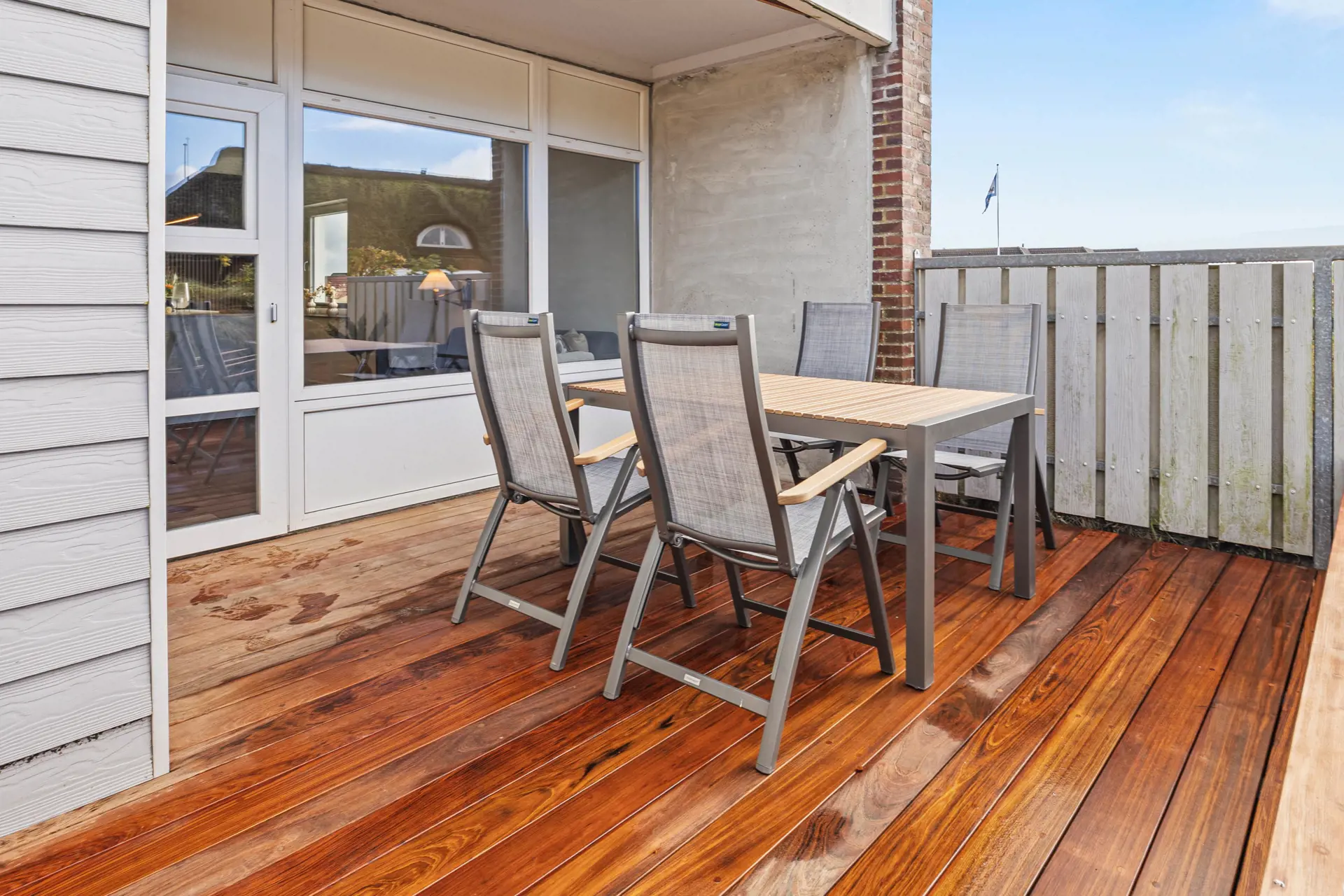 Das Herzstück der Ferienwohnung in Henne Strand ist die wundervolle Terrasse. Die abgeschirmte und geschlossene Terrasse ist wie gemacht für gemütliche Stunden im Freien. Ob zum Sonnenbaden am Morgen oder für den abendlichen Grillspaß, die Gartenmöbel stehen für dein Wohlbefinden bereit.
