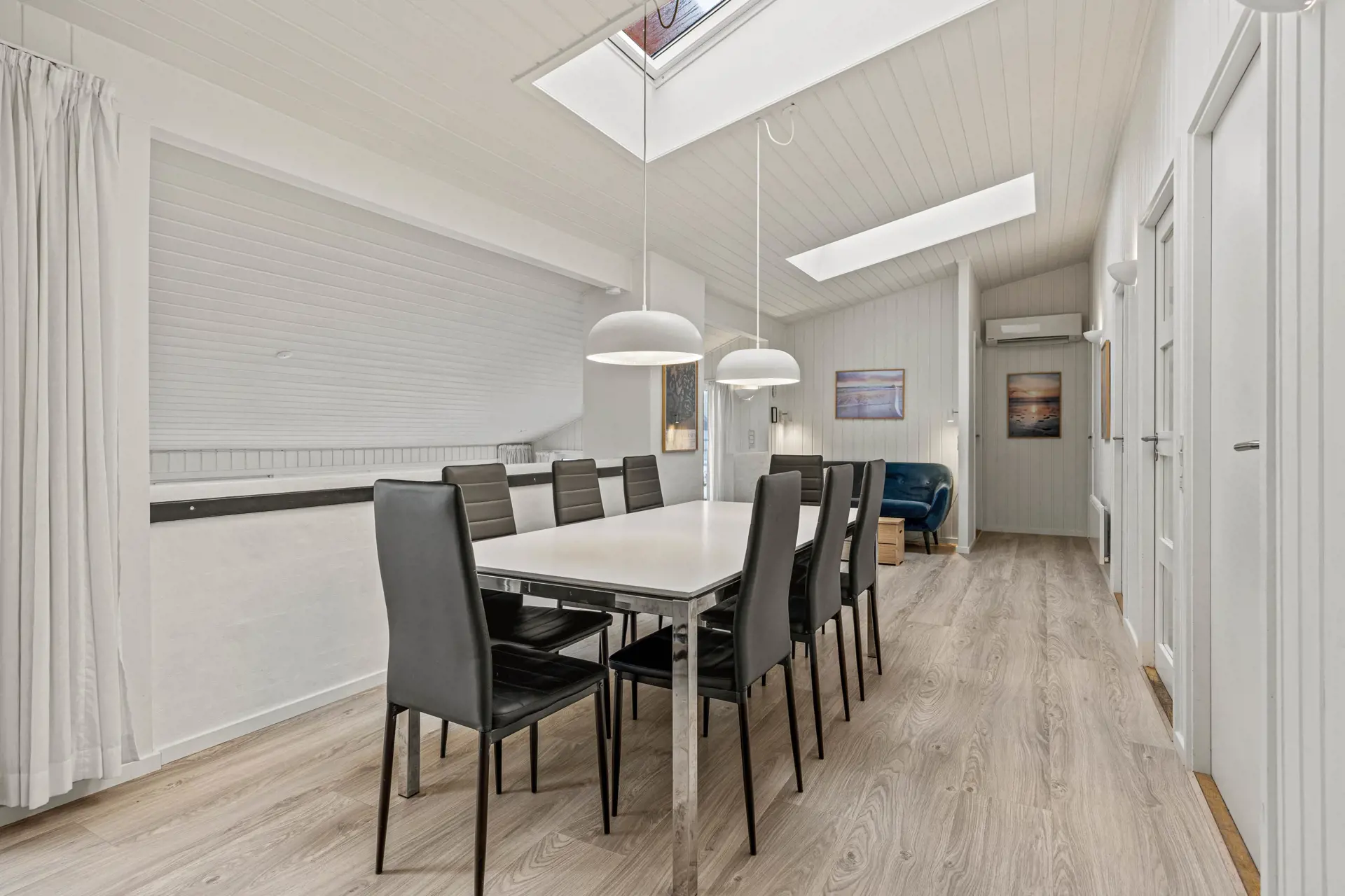 Nach einem ausgedehnten Spaziergang am Strand laden der Kaminofen und die Sauna zum Entspannen ein. Gönnt euch einen ruhigen Abend vor knisterndem Feuer oder schwitzt den Alltagsstress in der privaten Sauna aus. Das Ferienhaus verfügt über eine effiziente Wärmepumpe, die im Winter für behagliche Wärme sorgt. Verbringt schöne Stunden auf der offenen Terrasse mit hochwertigen Gartenmöbeln und Liegestühlen.