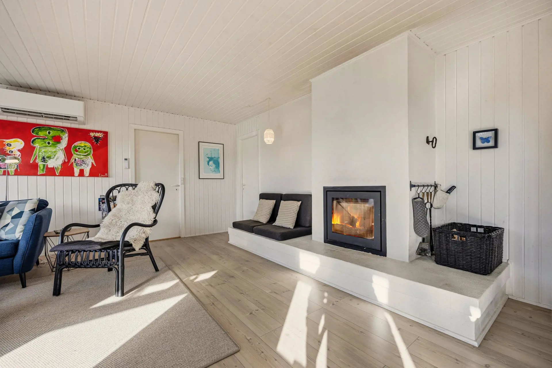 Nach einem langen Strandtag kommt ihr in den Wohnbereich zurück, der zum Zusammensitzen einlädt. Ein zusätzlicher Kamin sorgt für dieses besondere Hygge-Gefühl, während die Wärmepumpe ein angenehmes Raumklima unterstützt – ganz gleich, ob ihr im Sommer frische Luft oder in der kühleren Saison wohlige Wärme bevorzugt.