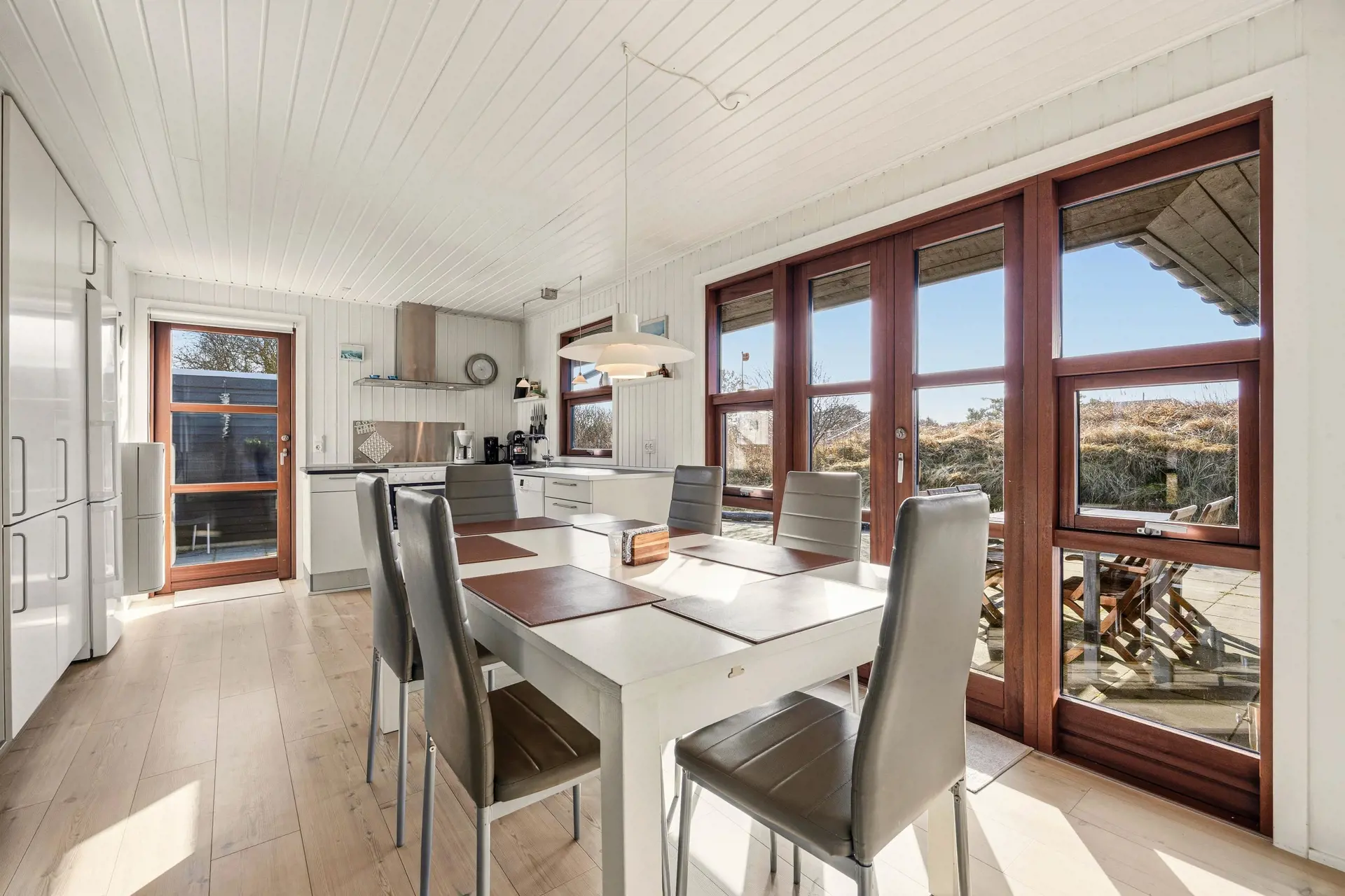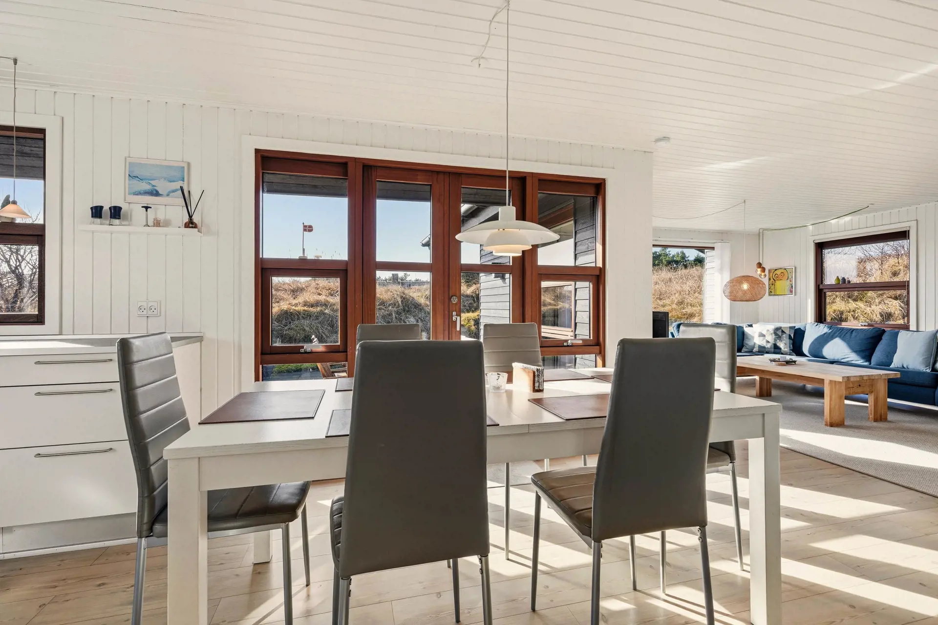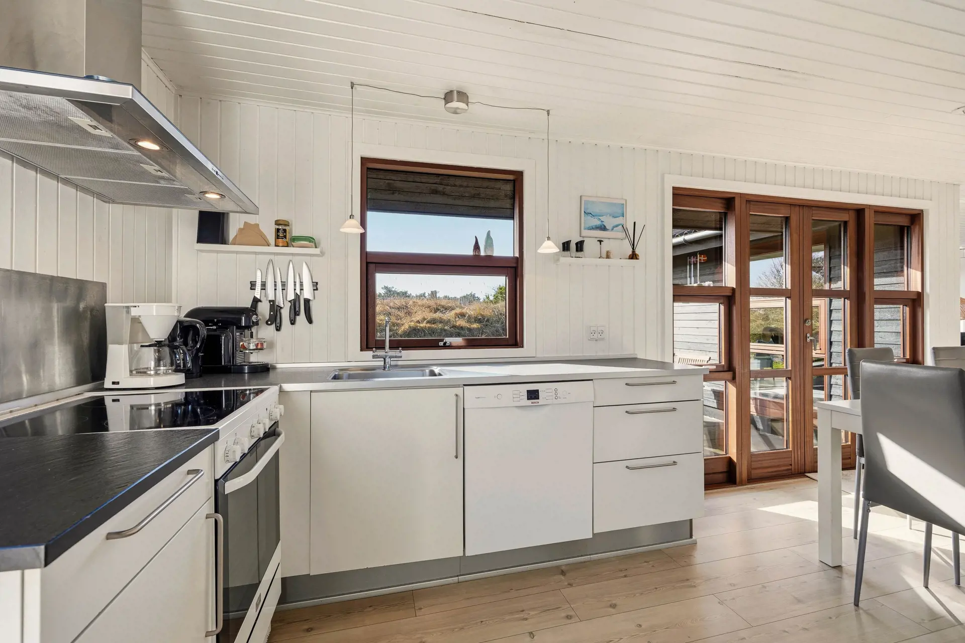 Das große 1549 m² Natur- und Dünengrundstück gibt Raum zum Abschalten, Spielen und Genießen. Ihr könnt euch je nach Wetter die passende Ecke aussuchen: eine offene Terrasse für Sonne, eine abgeschirmte Terrasse für mehr Windschutz und eine überdachte Terrasse, wenn ihr auch bei wechselhaftem Himmel draußen sitzen möchtet. Gartenmöbel machen es euch leicht, den Tag nach draußen zu verlegen, und mit dem Grill wird das Abendessen zum Urlaubserlebnis. Genau hier zeigt sich eines der schönsten Merkmale dieses Ferienhaus in Henne Strand: Ihr kombiniert Strandnähe mit einem Grundstück, das dir draußen spürbar mehr Freiheit bietet.
