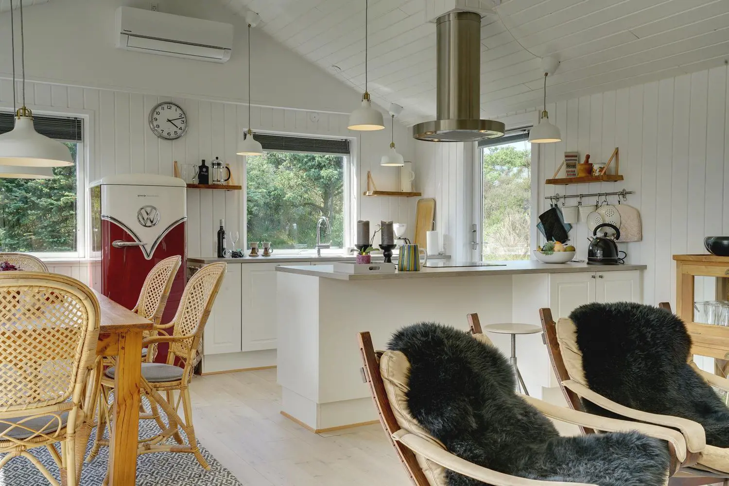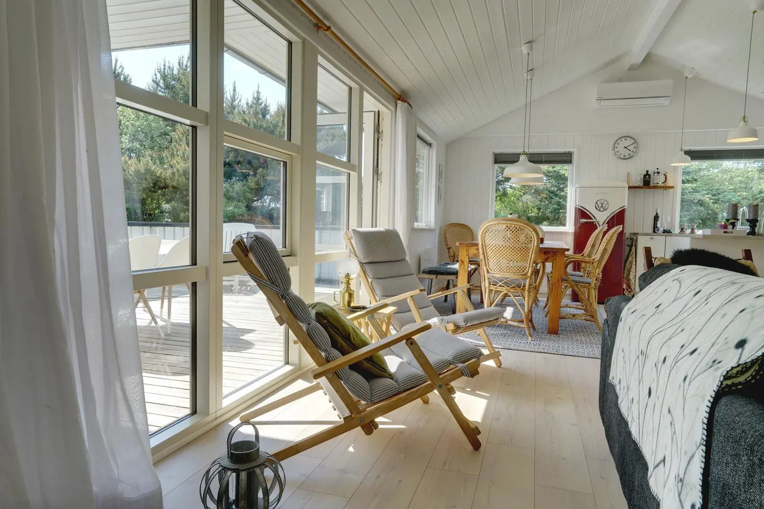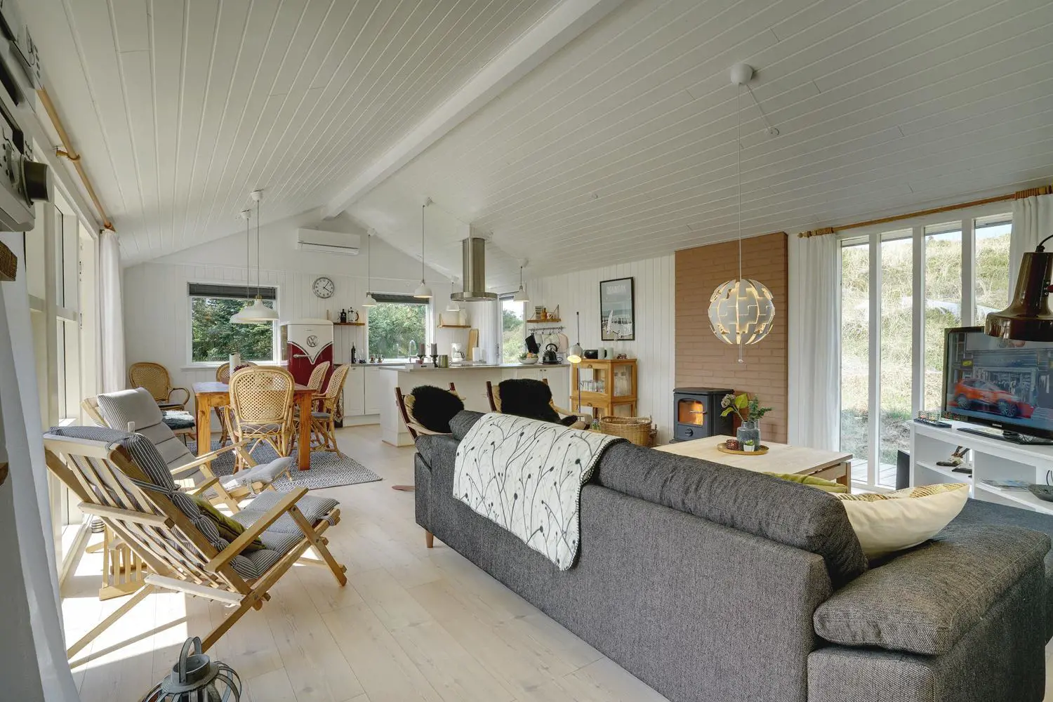 Dieses Ferienhaus in Henne Strand überzeugt mit einer durchdachten Ausstattung und viel Platz für die ganze Familie. Der helle Wohnbereich mit Kamin schafft echte Dänemark-Atmosphäre, während die energiesparende Wärmepumpe für ein angenehmes Raumklima sorgt – zu jeder Jahreszeit.
