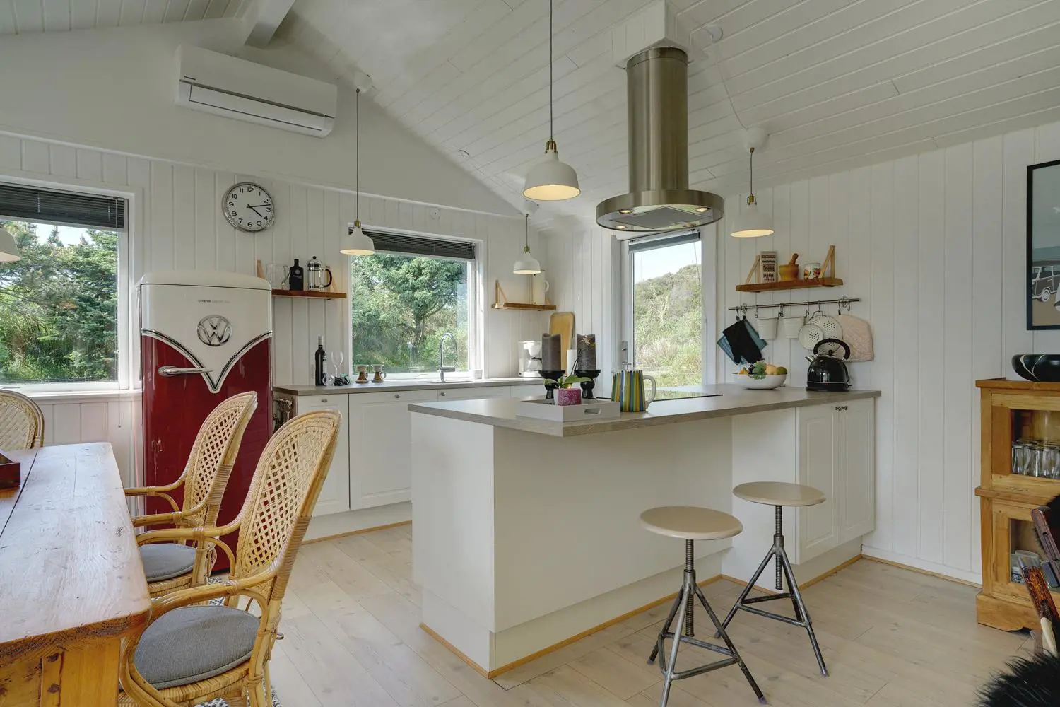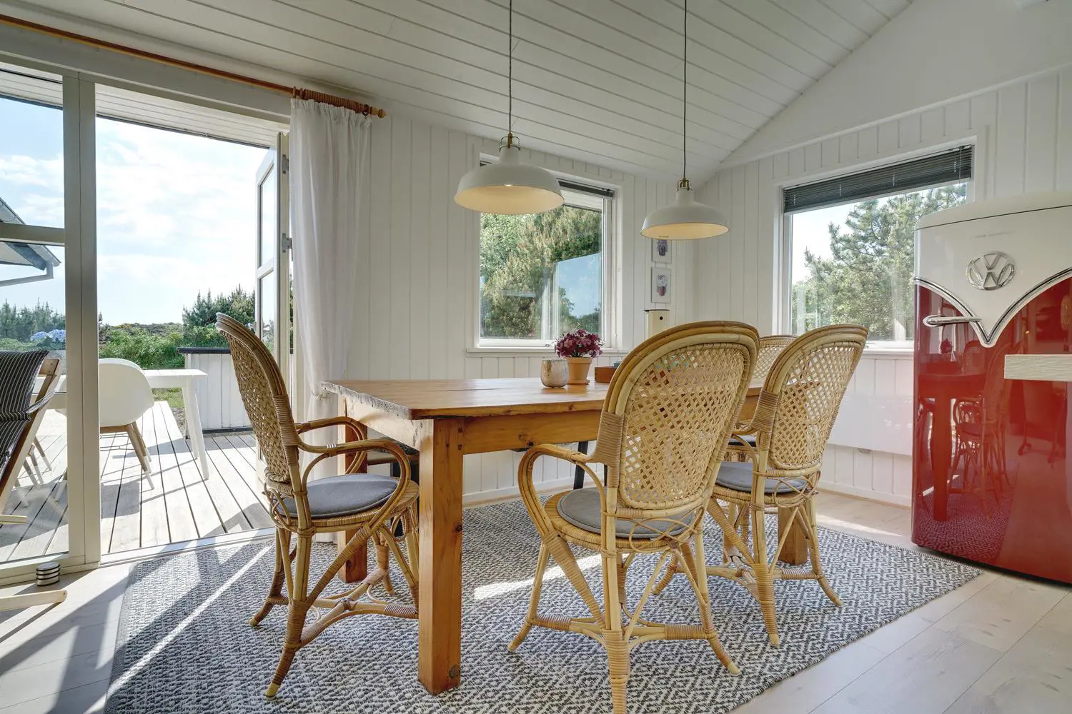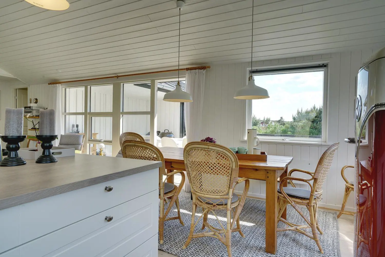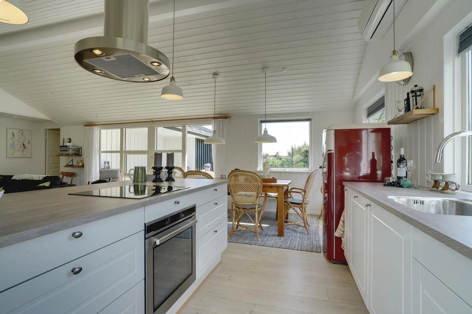 Dieses Ferienhaus in Henne Strand überzeugt mit einer durchdachten Ausstattung und viel Platz für die ganze Familie. Der helle Wohnbereich mit Kamin schafft echte Dänemark-Atmosphäre, während die energiesparende Wärmepumpe für ein angenehmes Raumklima sorgt – zu jeder Jahreszeit.