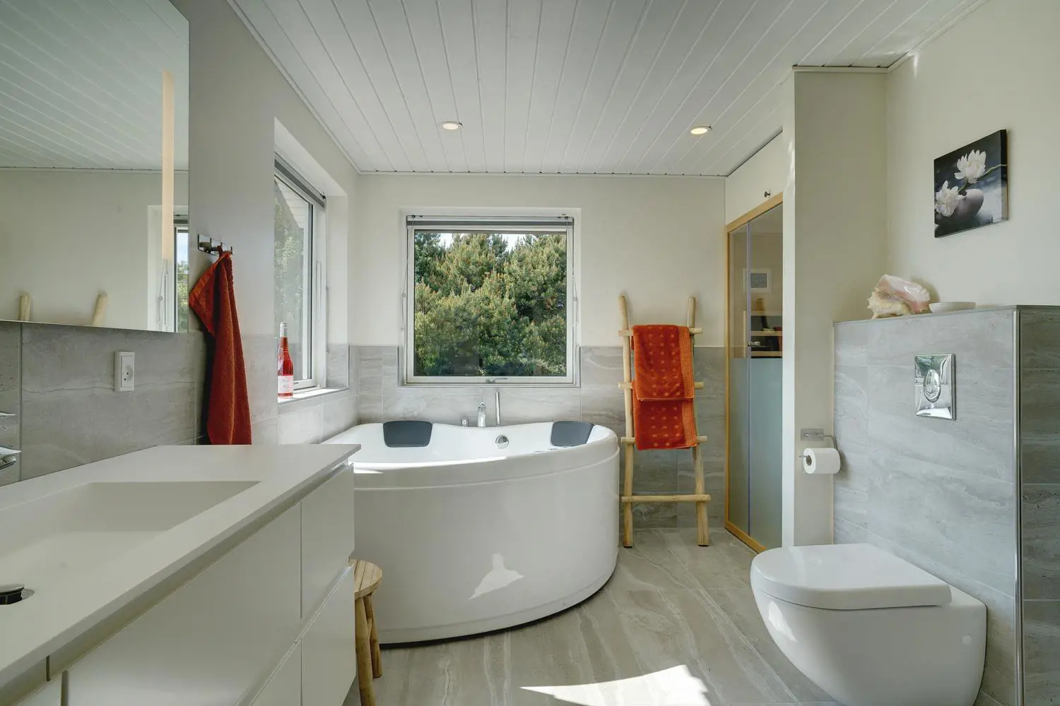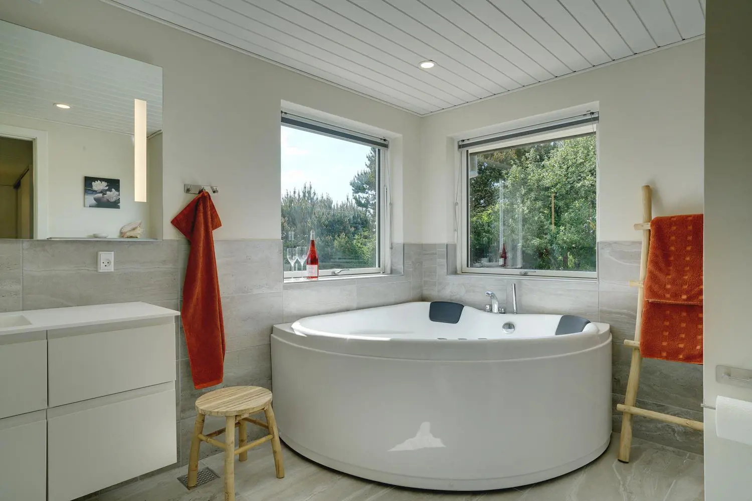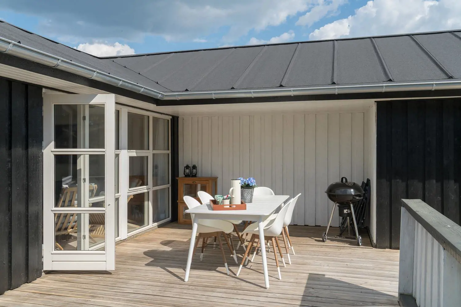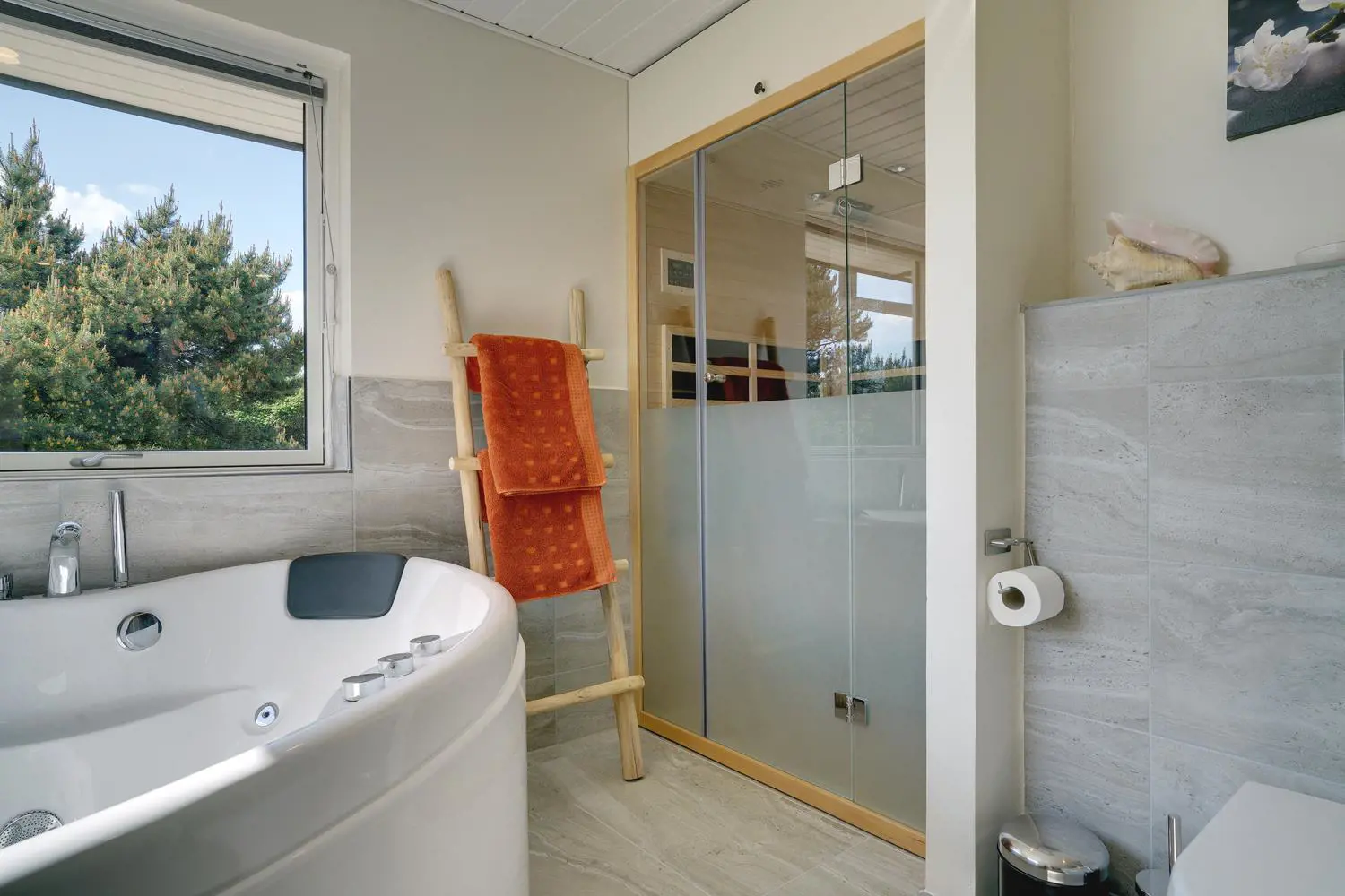 Auf der überdachten Terrasse kannst du unabhängig vom Wetter entspannen und die frische Luft der Nordsee genießen. Der Außen-Whirlpool macht deinen Urlaub zu einem echten Wellness-Erlebnis unter freiem Himmel. Nach dem Strandbesuch sorgt die Außendusche für eine angenehme Erfrischung.
