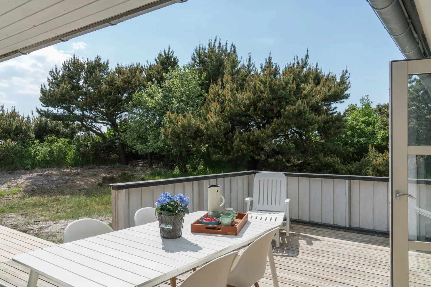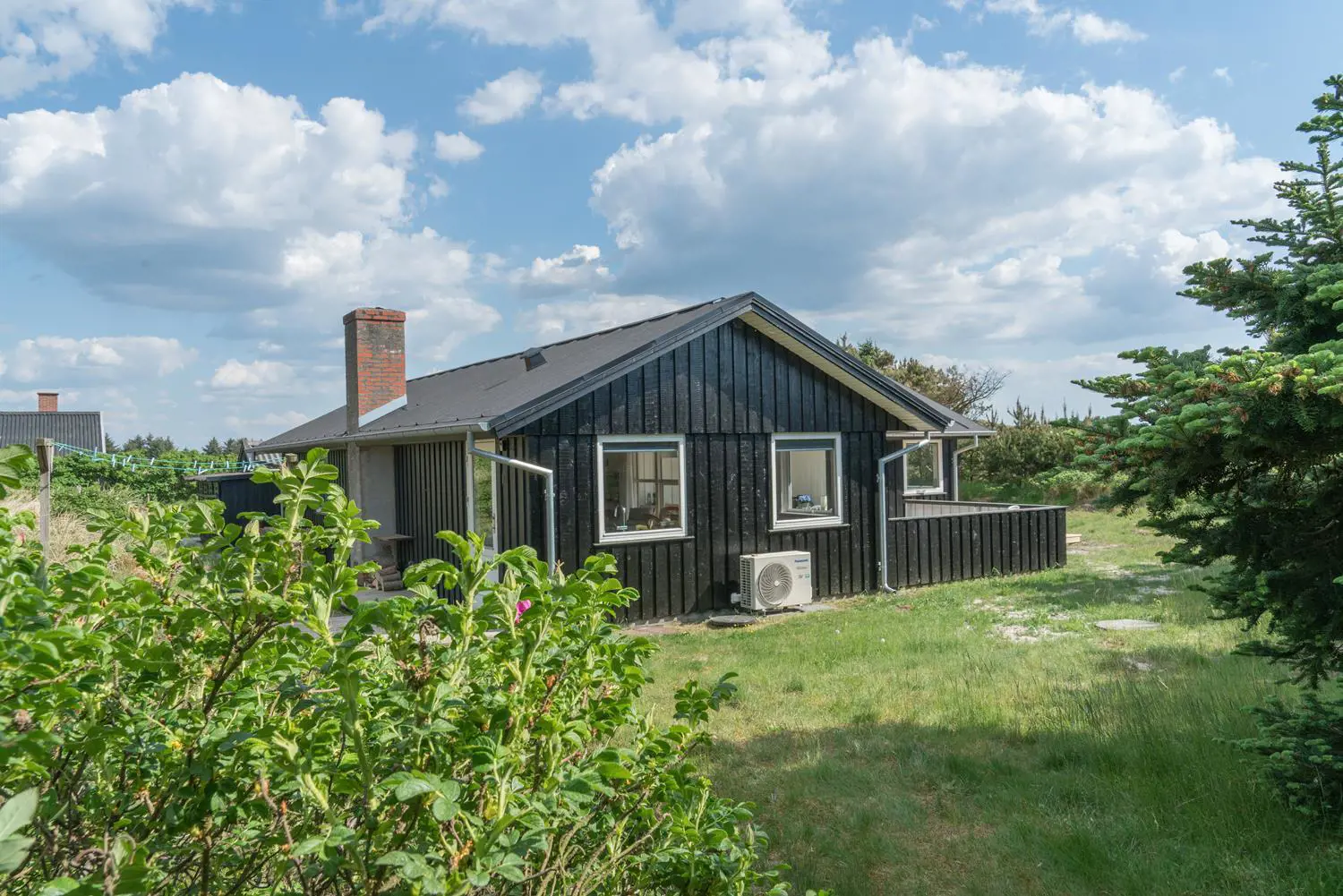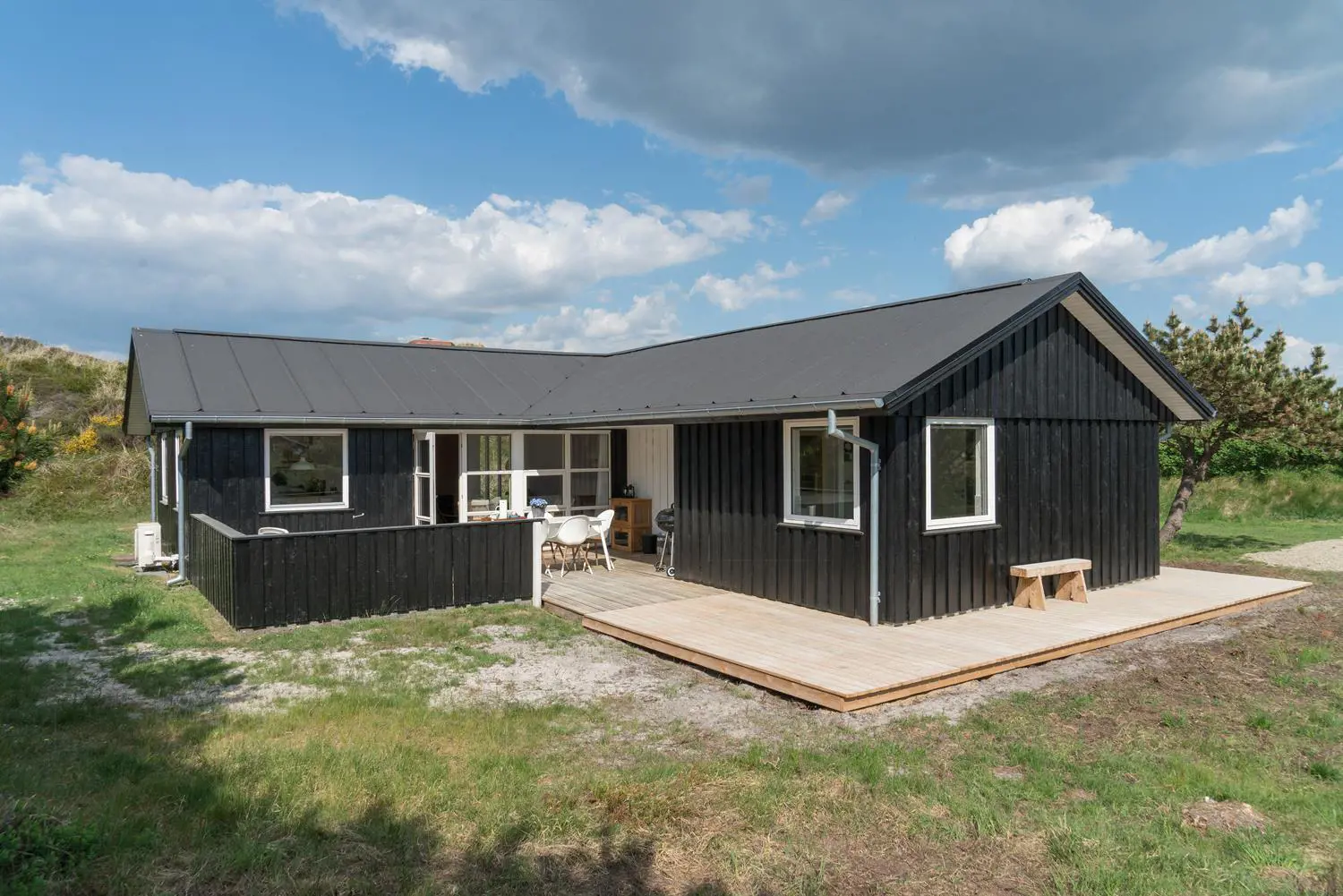 Auch der Außenbereich lässt keine Wünsche offen. Das Grundstück am Hjelmevej 73 liegt ruhig und naturnah mit herrlichem Blick auf die Dünenlandschaft der dänischen Westküste.