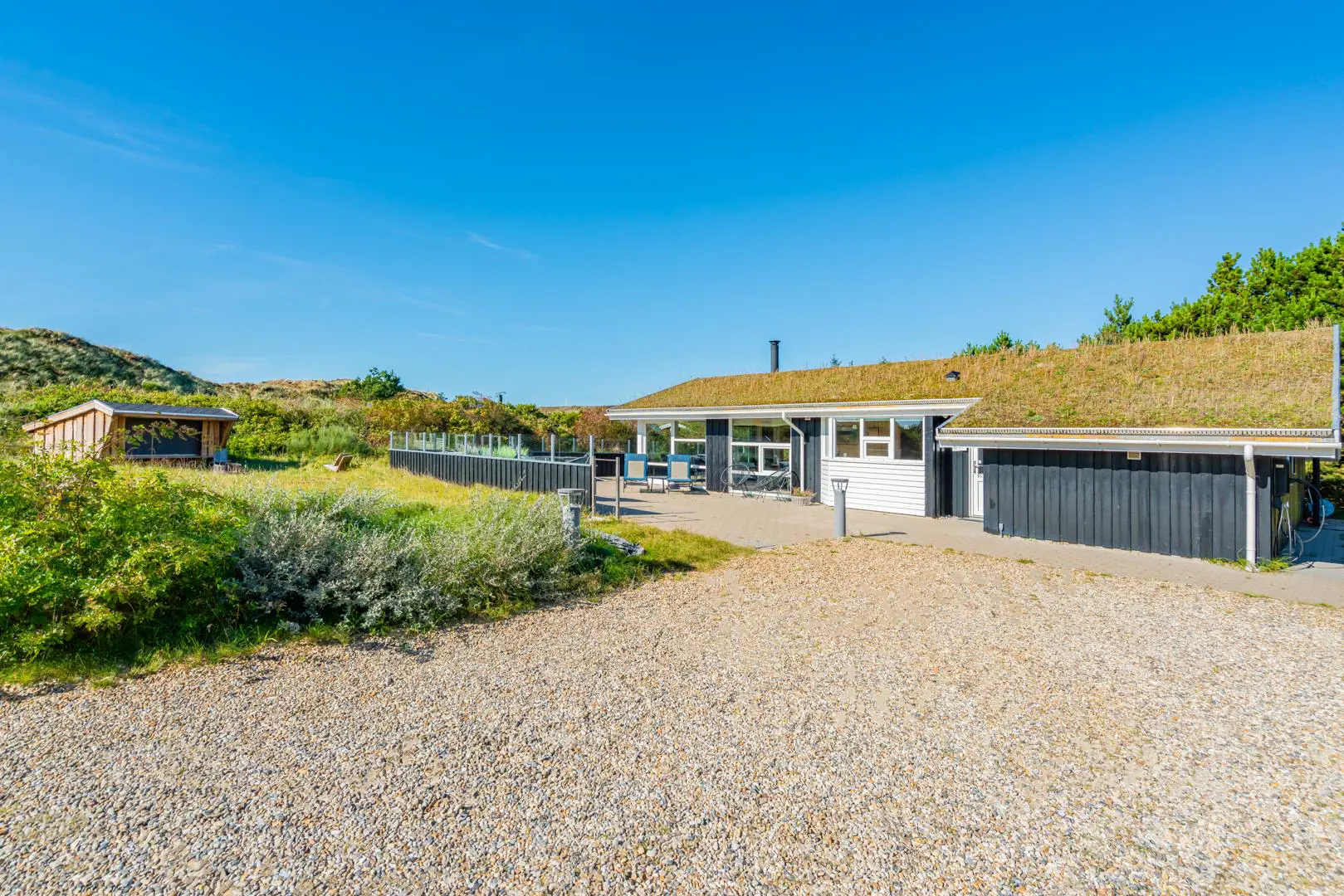 Das Haus liegt auf einem ruhigen Grundstück mit Blick auf die Dünen. Die Natur ist also direkt vor der Tür und es gibt reichlich Gelegenheit, die grün bewachsenen Dünen, die offenen Heidelandschaften und die tiefe Ruhe des Waldes zu erleben. Ausserdem gibt es einen Shelter mit 4 Schlafplätzen, falls man das draussen übernachten einmal ausprobieren möchte. Der Weg zum Strand und zu den Geschäften und Restaurants im Strandvejen dauert nur eine Viertelstunde und zum Henne Golf Club sind es nur drei Kilometer.