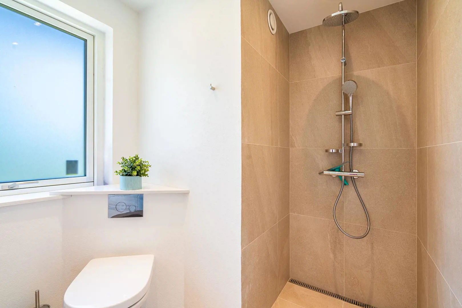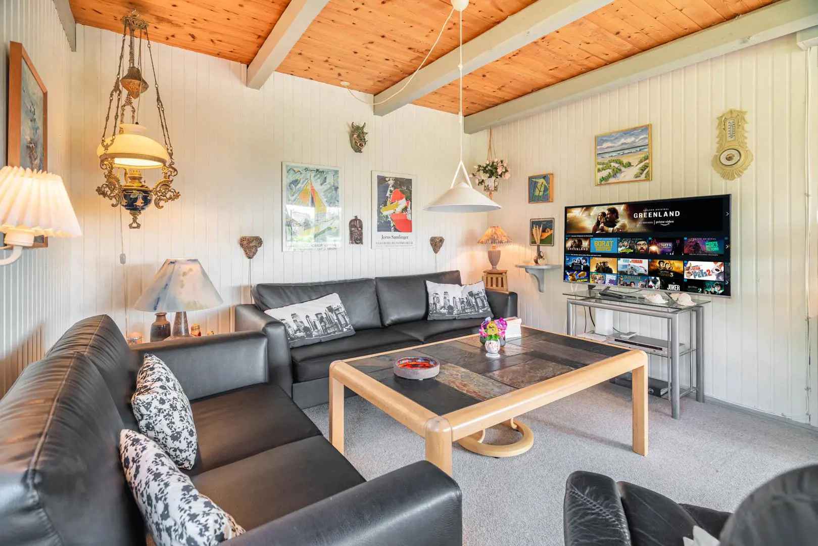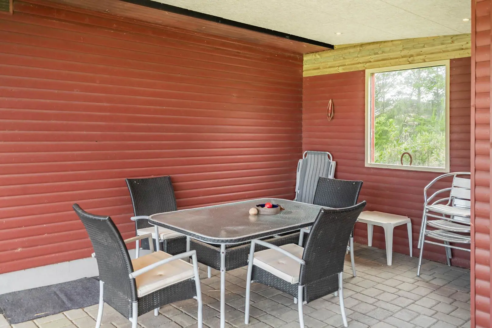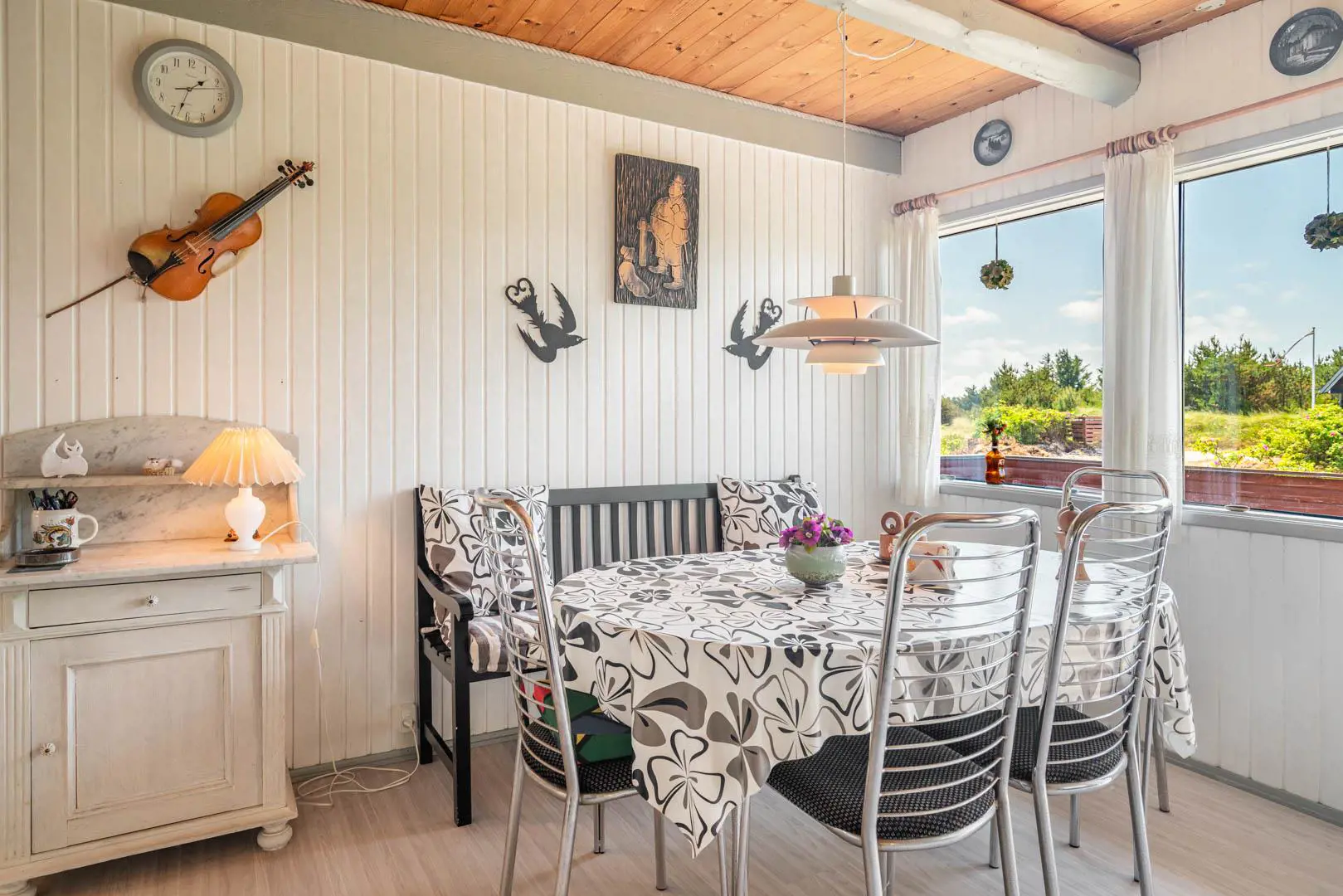 Im Inneren erwartet Sie eine freundliche und einladende Atmosphäre. Das Ferienhaus verfügt über ein neues, modernes Badezimmer sowie eine gut ausgestattete Küche mit gemütlicher Essecke, die zu gemeinsamen Mahlzeiten einlädt. Das helle und angenehme Wohnzimmer bietet direkten Zugang zur überdachten Terrasse, wo Sie Ihre Mahlzeiten genießen oder unabhängig vom Wetter entspannen können.