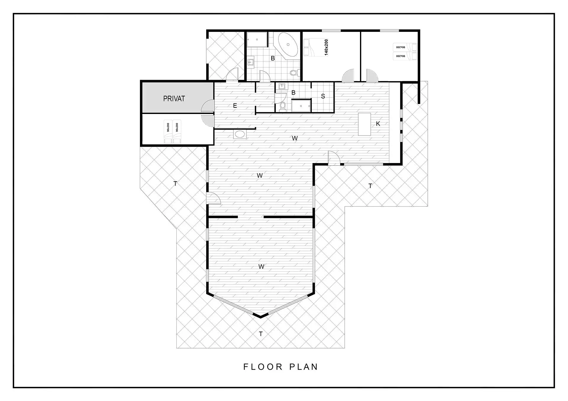 Bettengrösse: 2 Doppelbetten mit je 2 Matratzen á 90 x 200 cm + 1 Doppelbett 140 x 200 cm.