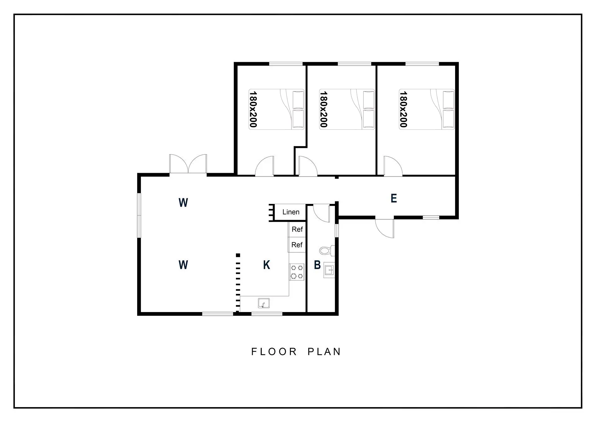 Bettengrösse: 3 Doppelbetten 180 x 200 cm