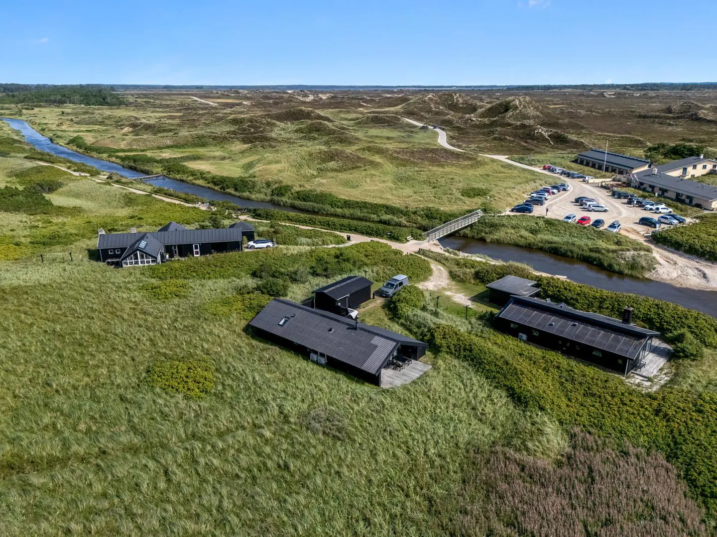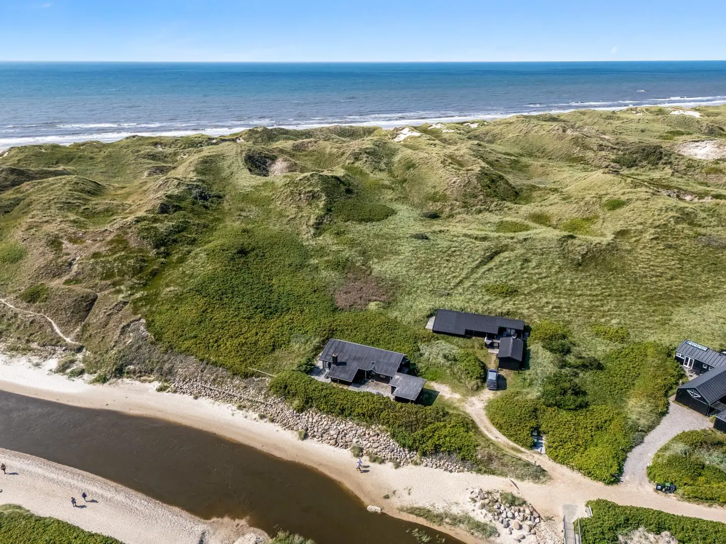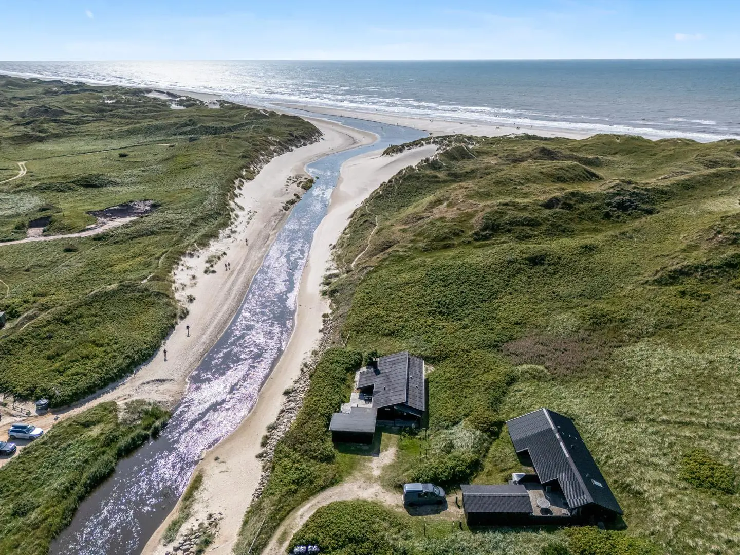 Der Weg zum Strand führt idyllisch entlang des Baches – nur etwa 300 Meter sind es bis zum Meer. Ein wunderbarer Ort, umgeben von Dünen, Heide, weitem Blick und wohltuender Ruhe. Klingt fast poetisch – und genau so ist es. Diese Lage ist wirklich einzigartig.