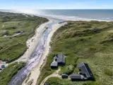 Es gibt nur sehr wenige Ferienhäuser in Henne Strand, die eine solch außergewöhnliche Lage bieten. Am Ende des Gejlbjergvej, dort wo die Natur rund um Henne Mølle Å und das historische Badehotel von Poul Henningsen den Charakter prägen, steht dieses Ferienhaus fast als letztes vor der offenen Nordsee.