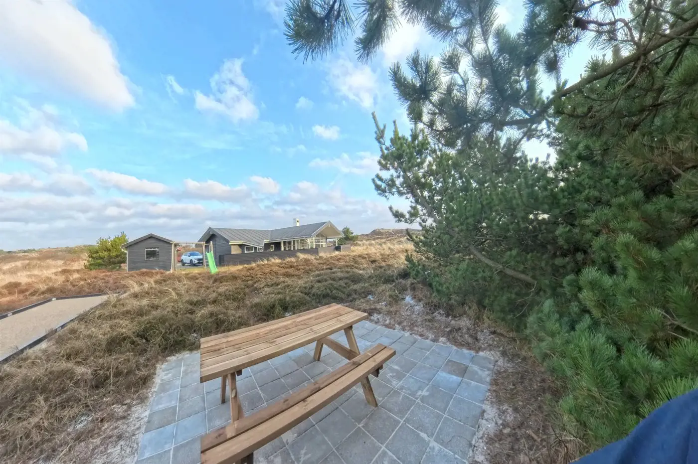 Im Außenbereich findet ihr sowohl offene als auch überdachte, eingezäunte Terrassen mit mehreren schönen Sitzplätzen für die Mahlzeiten des Tages und entspannte Pausen – alle mit herrlichem Blick über die Umgebung. In der Nähe der Terrasse liegt die hauseigene Pétanquebahn, die ganz natürlich die Familie zu gemütlichen Turnieren und gemeinsamen Stunden im Freien versammelt. Gleichzeitig lädt die Umgebung rund um das Haus zu ruhige Spaziergänge auf den Pfaden die durch die Dünen führen ein.