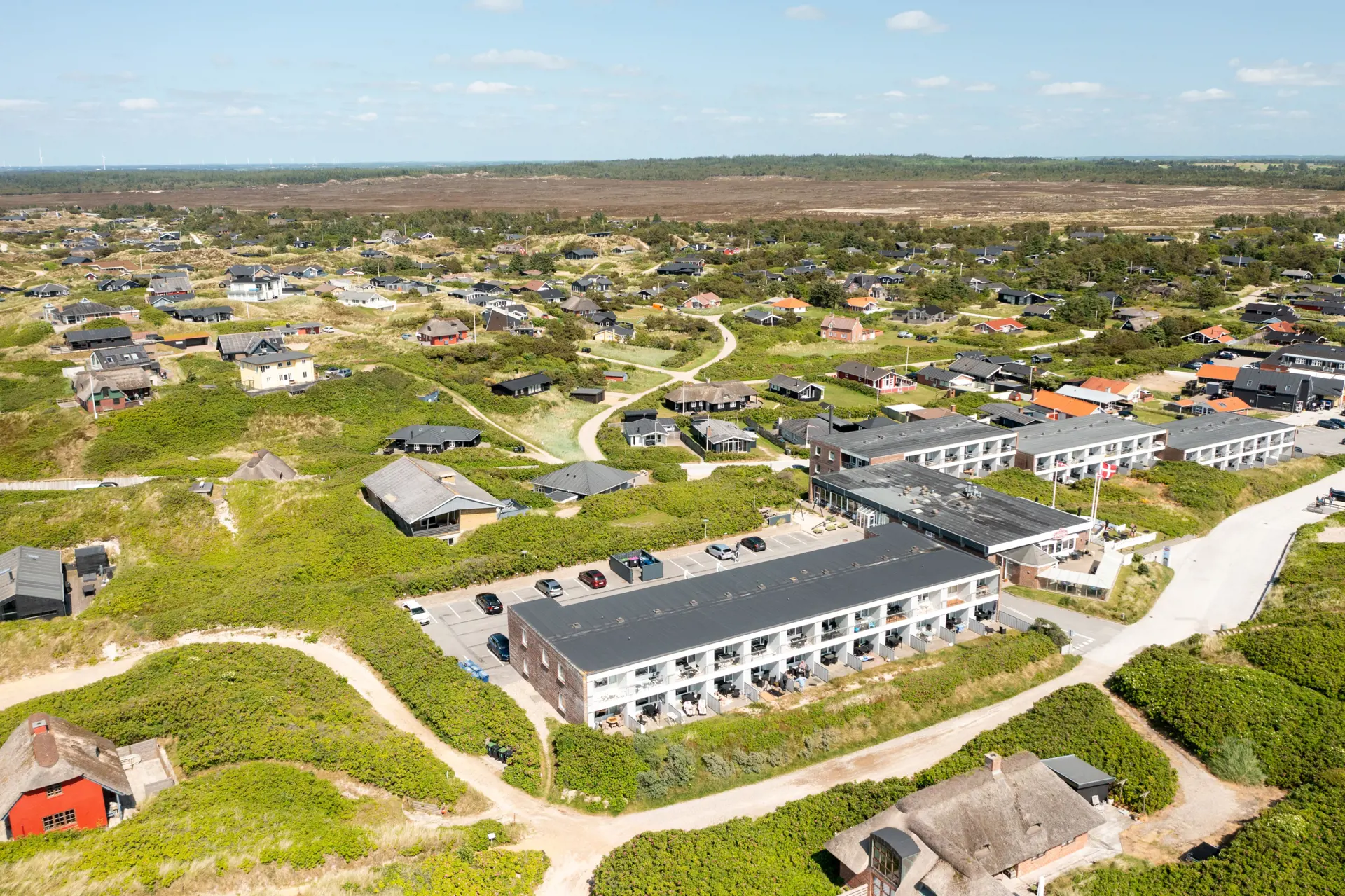 Das Ferienzentrum Henne Strand ist eine schöne Oase mit vielen Möglichkeiten und vielen Restaurants. Egal, ob Sie auf der Suche nach einem echten Strandort mit vielen Einkaufsmöglichkeiten sind, einen aktiven Urlaub verbringen oder einfach nur in der Nähe der Nordsee wohnen möchten, in Henne Strand gibt es alle Möglichkeiten. Im Ferienzentrum selbst gibt es viele Einrichtungen. Wenn Sie Golf spielen, gibt es in Henne By einen 18-Loch-Golfplatz – nur 3 km von der Wohnung entfernt. Hier gibt es auch ein Geschäft mit Bernstein, ein Reitzentrum und Henne Kirkeby Kro, ein einzigartiges Michelin-Gourmet-Erlebnis. In Blåbjerg Plantage gibt es eine fantastische Mountainbike-Route und schöne markierte Wege, die bei jedem Wetter sowohl zu Fuß als auch mit dem Fahrrad genutzt werden können. Das restaurierte Filsø liegt südöstlich von Henne Strand und bietet ein einzigartiges Naturerlebnis der Extraklasse. Außerdem ist die Nordsee 100-200 m von den Wohnungen entfernt. Ein Erlebnis, das jeden Tag im Jahr neue malerische Eindrücke bietet.
