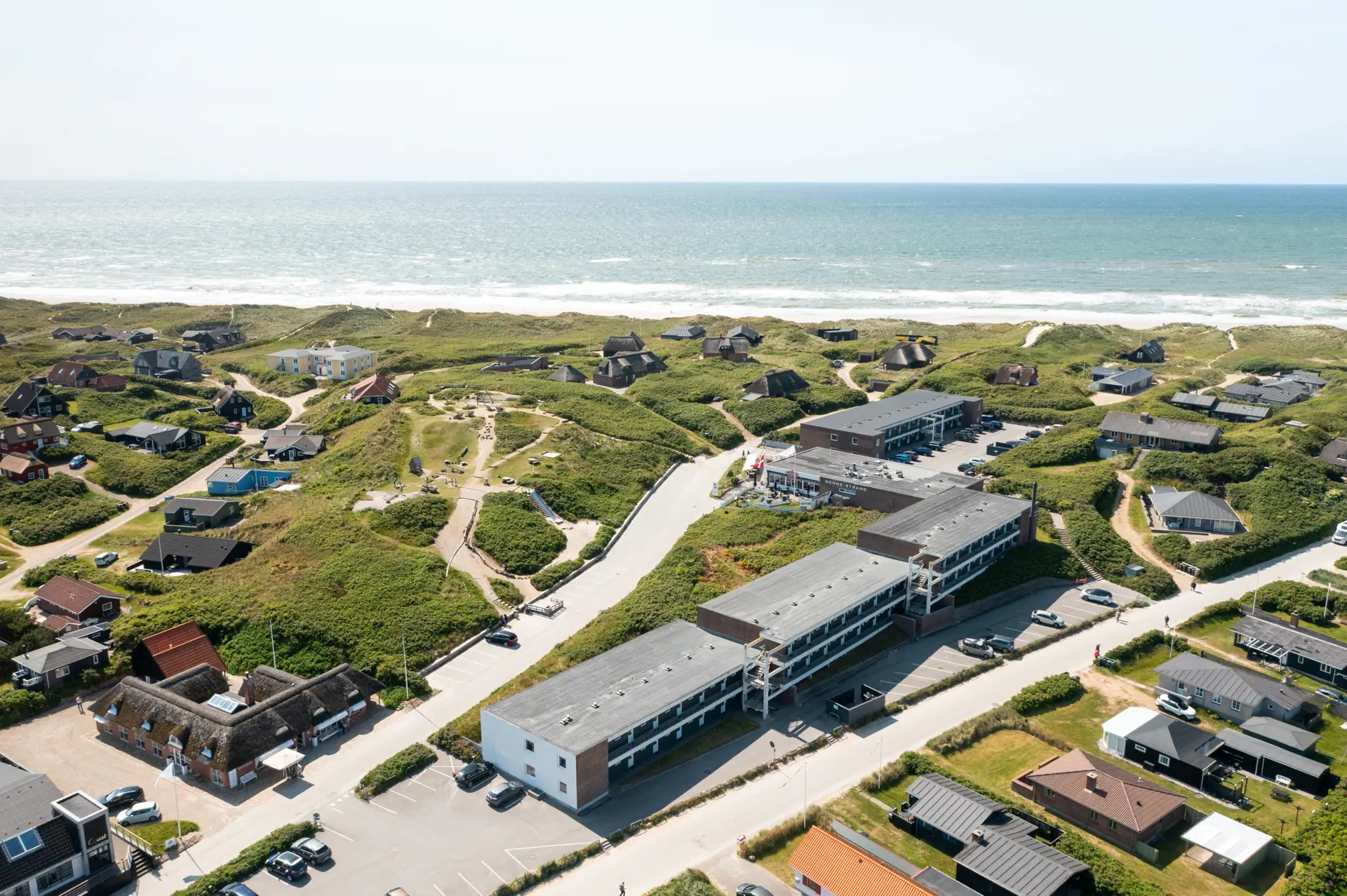 Machen Sie einen Ausflug zum Strand über die direkten Wege vom Ferienzentrum aus, nutzen Sie den Grillplatz im Freien, die kleine Bibliothek mit der Möglichkeit zum Bücher tauschen oder waschen Sie das Auto auf dem markierten Parkplatz. Am Nordseestrand können Sie echten Saunaspaß erleben und dabei das Rauschen und den Anblick der Wellen der Nordsee genießen. Natürlich besteht auch die Möglichkeit, direkt in die Wellen zu springen. Für die kleinen Gäste gibt es einen schönen Spielplatz, auf dem Sie die Rutsche hinuntersausen, auf Klettergerüst, Schaukel usw. spielen können, während die Eltern entspannen und den Blick auf die Nordsee genießen können. Sollte es passieren, dass Sie beim Besuch einer örtlichen Eisdiele eine Kugel Eis auf Ihr T-Shirt verschütten, verfügt das Henne Strand Holiday Centre auch über einen Waschsalon mit Waschmaschinen und Trocknern. Wenn Sie Fahrräder mitgebracht oder gemietet haben, besteht die Möglichkeit, diese im Fahrradraum des Zentrums abzuschließen. Dort gibt es natürlich auch einen großen Gefrierschrank, den Sie frei nutzen können, wenn Sie auf einem Angelausflug waren oder einfach zusätzlichen Gefrierraum benötigen. Wenn Sie eine Wohnung im Henne Strand Feriencenter mieten, erhalten Sie auch Ihren eigenen privaten Parkplatz im Zentrum, der dieselbe Nummer wie die gemietete Wohnung hat.