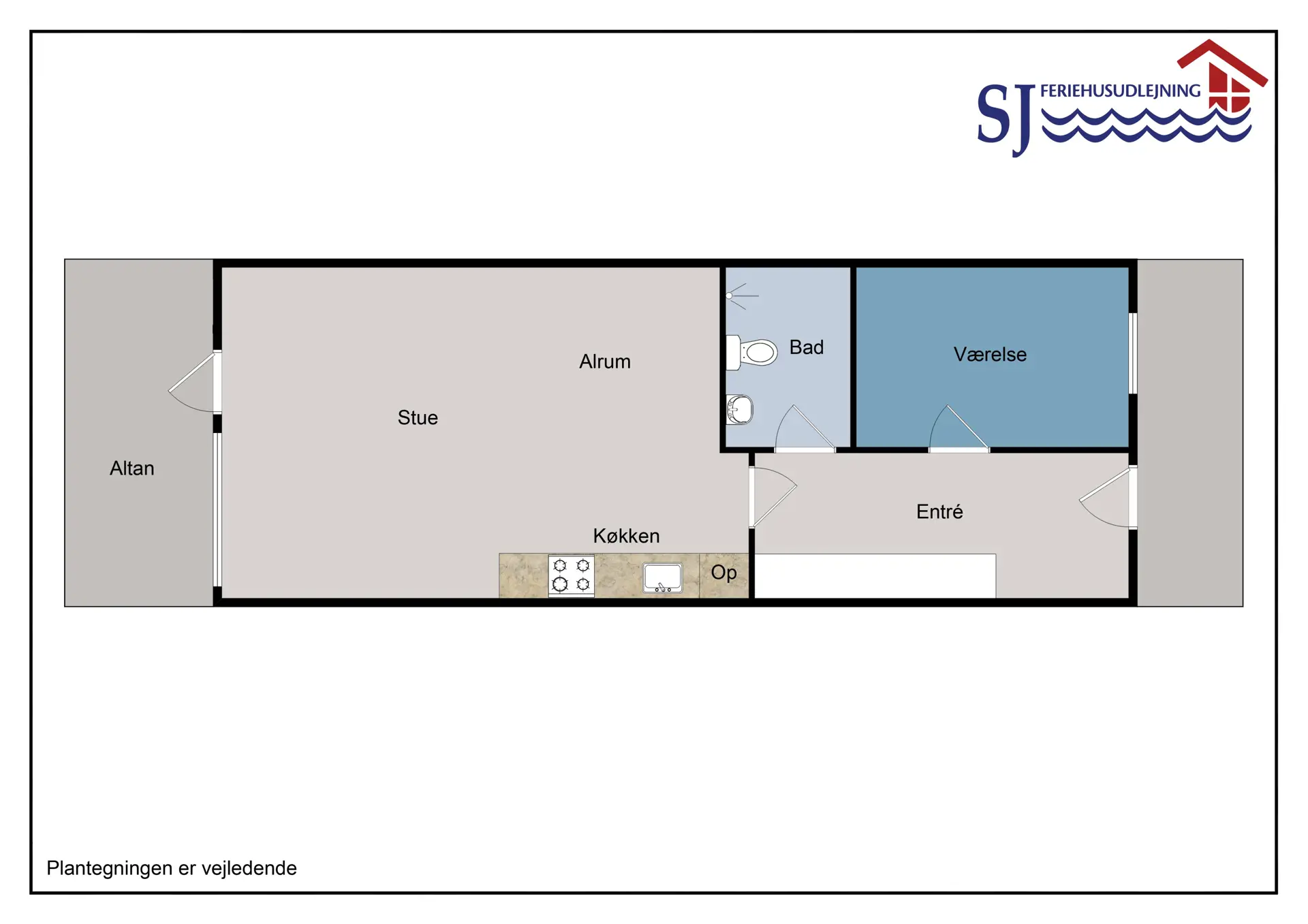 Sehr schön und modern eingerichtete Ferienwohnung im ersten Stock. Kombiniertes Wohnzimmer und Küche. Das Wohnzimmer ist eingerichtet mit Leder- und Polstermöbel, Kabel-TV, DVD und Pergofußboden. Die Küche ist eingerichtet mit Glasskeramischem Herd, Kühlschrank mit 10 L Frostbox, Mikrowelle, Spülmaschine, Abzugshaube, und Pergofußboden. Badezimmer mit Toilette, Waschbecken und Dusche. Vom Wohnzimmer ist der Ausgang zu einem überdeckten Balkon mit Gartenmöbeln. Die Treppe zum ersten Stock besteht aus 24 Stufen.