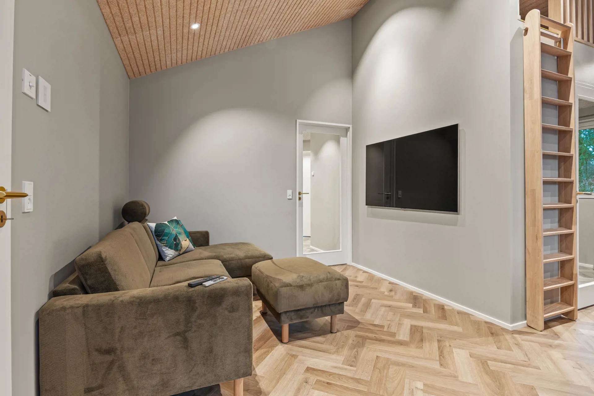Der Wohnraum ist das Herzstück des Ferienhauses. Hier findet ihr nicht nur bequeme Sitzmöglichkeiten, sondern auch einen einladenden Kamin, der für wohlige Wärme an kühleren Abenden sorgt. Eine gemütliche Atmosphäre und moderne Unterhaltungstechnik wie Apple TV machen dieses Wohnzimmer zum idealen Ort, um gemeinsam zu plaudern, Spieleabende zu veranstalten oder die Lieblingsfilme zu genießen.