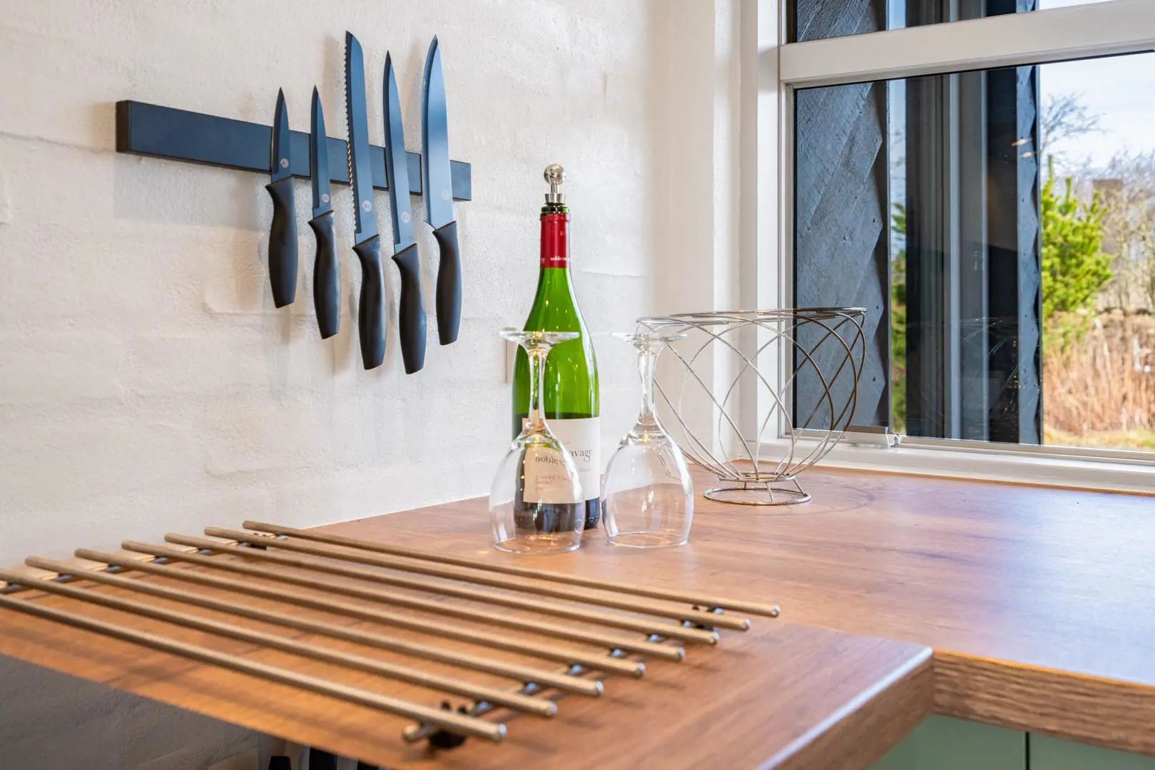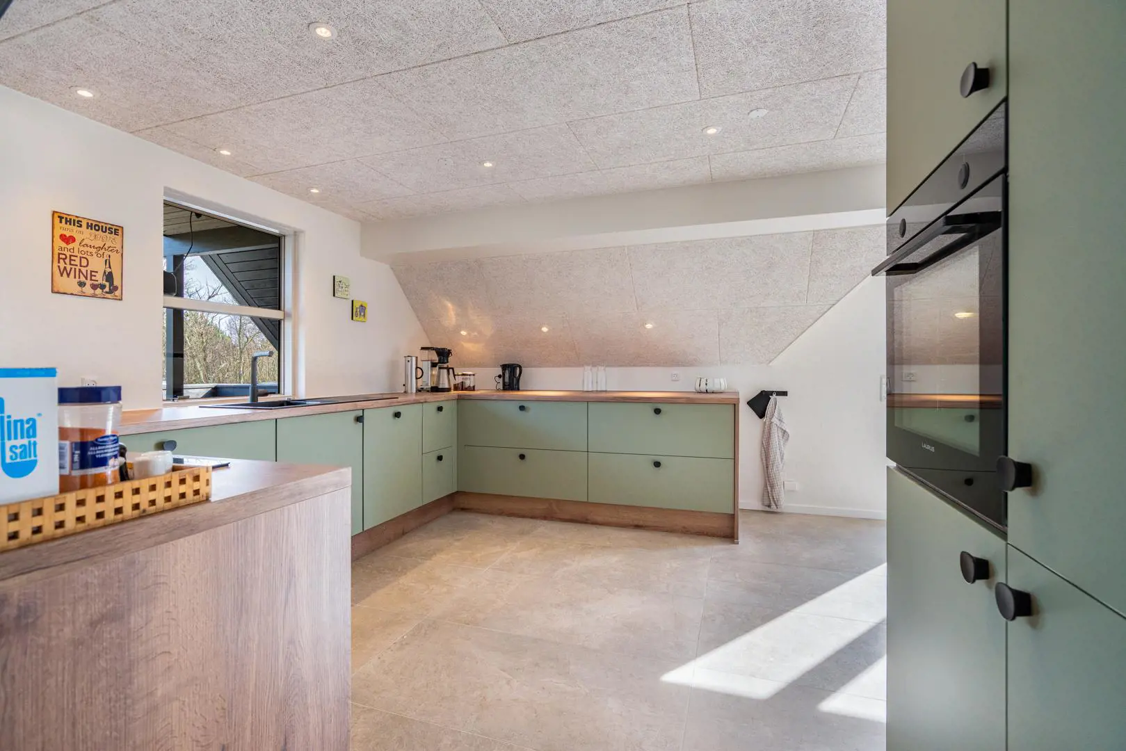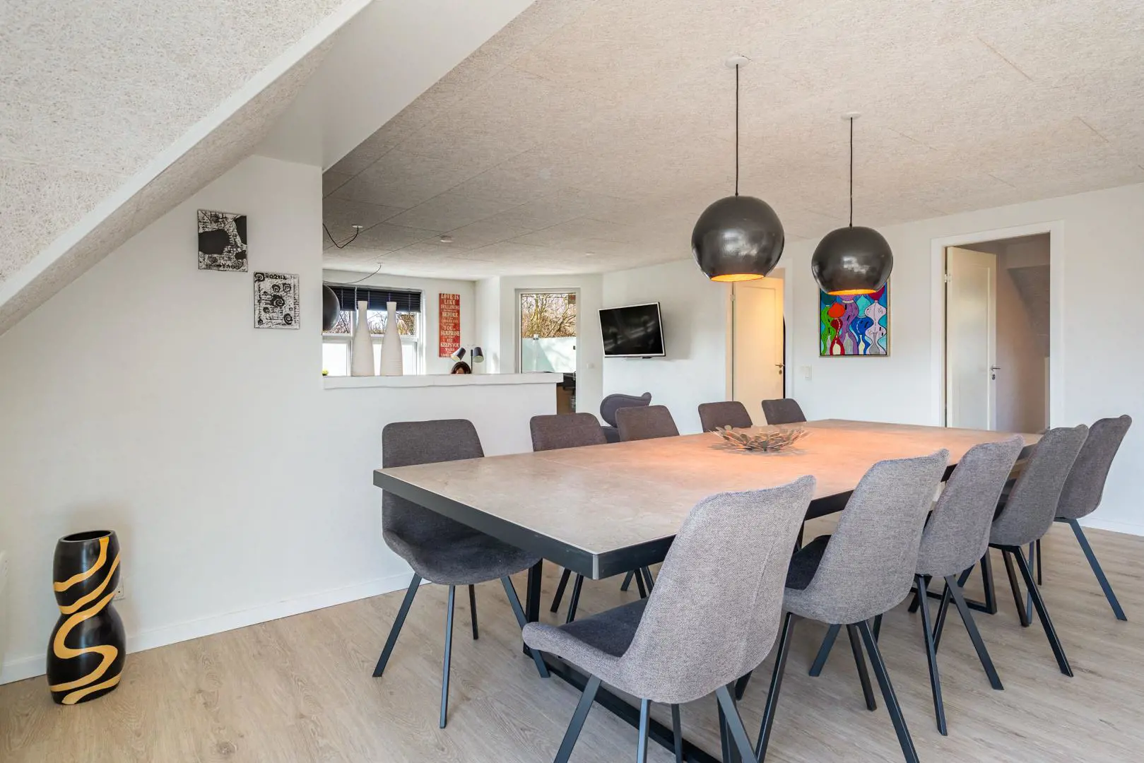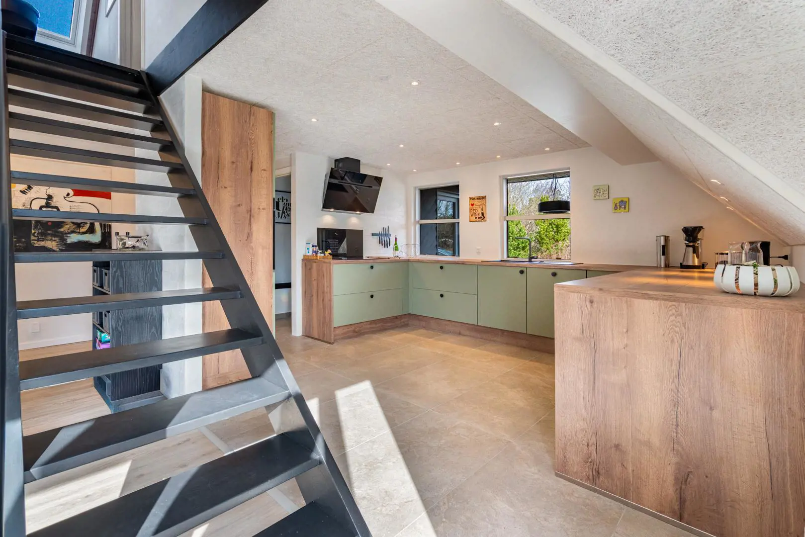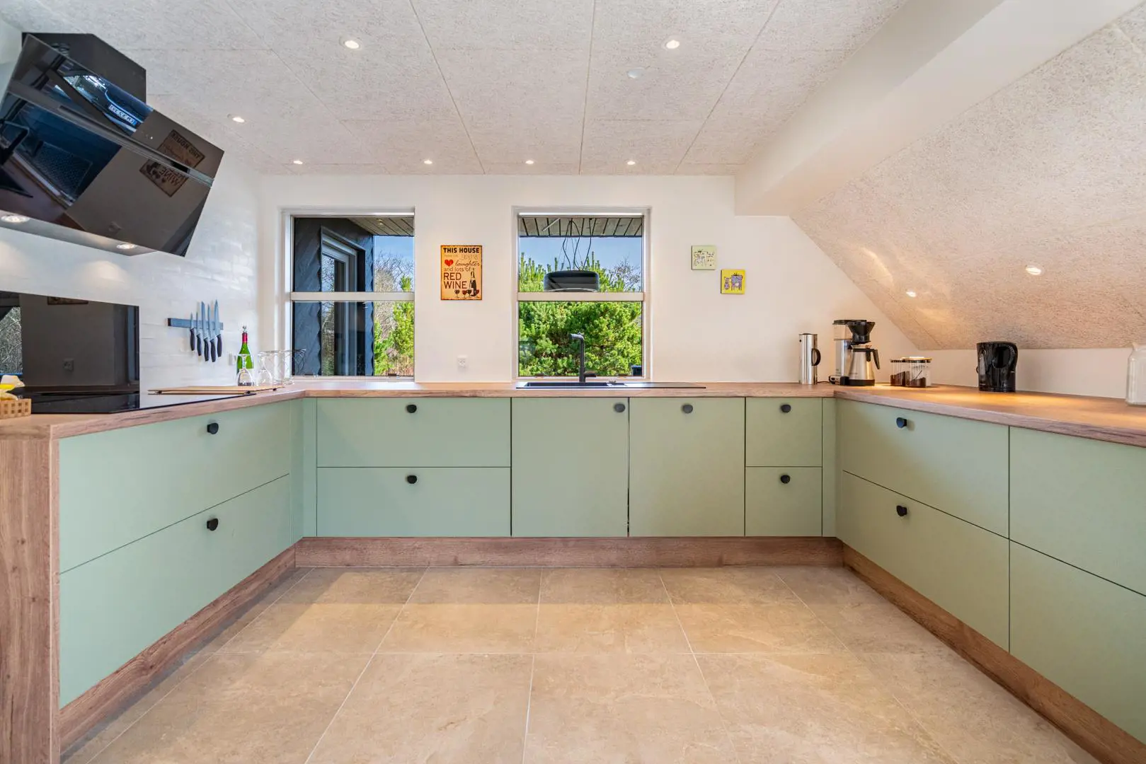 Dieses stilvolle Ferienhaus in Henne Strand überzeugt mit einer hellen und offenen Raumaufteilung. Das Herzstück ist die große Küche in offener Verbindung mit Essbereich und Wohnzimmer. Hier kannst du gemeinsam kochen, essen und entspannen. Die Küche ist modern ausgestattet – inklusive Spülmaschine, Fußbodenheizung und viel Arbeitsfläche, damit auch größere Gruppen bequem zusammen kochen können.