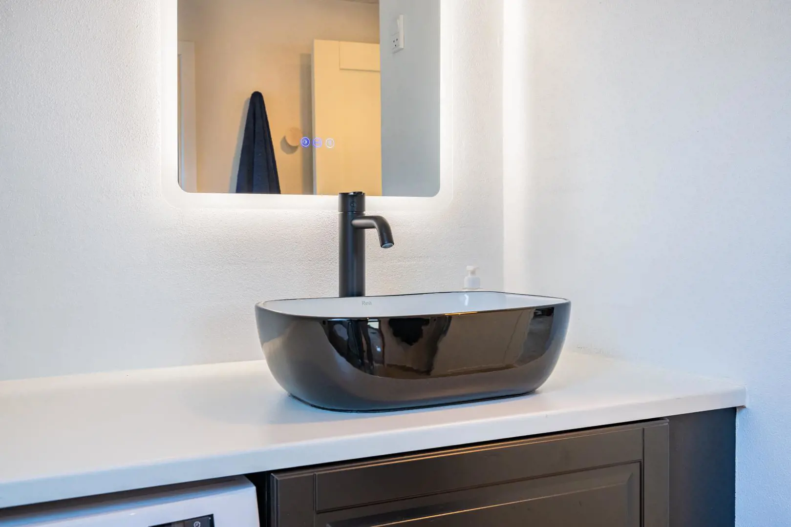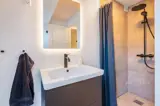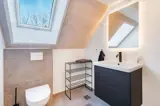 Zusätzlich stehen Waschmaschine und Trockner zur Verfügung, und im praktischen Eingangsbereich findest du ausreichend Platz für Jacken, Schuhe und sonstige Kleidung.