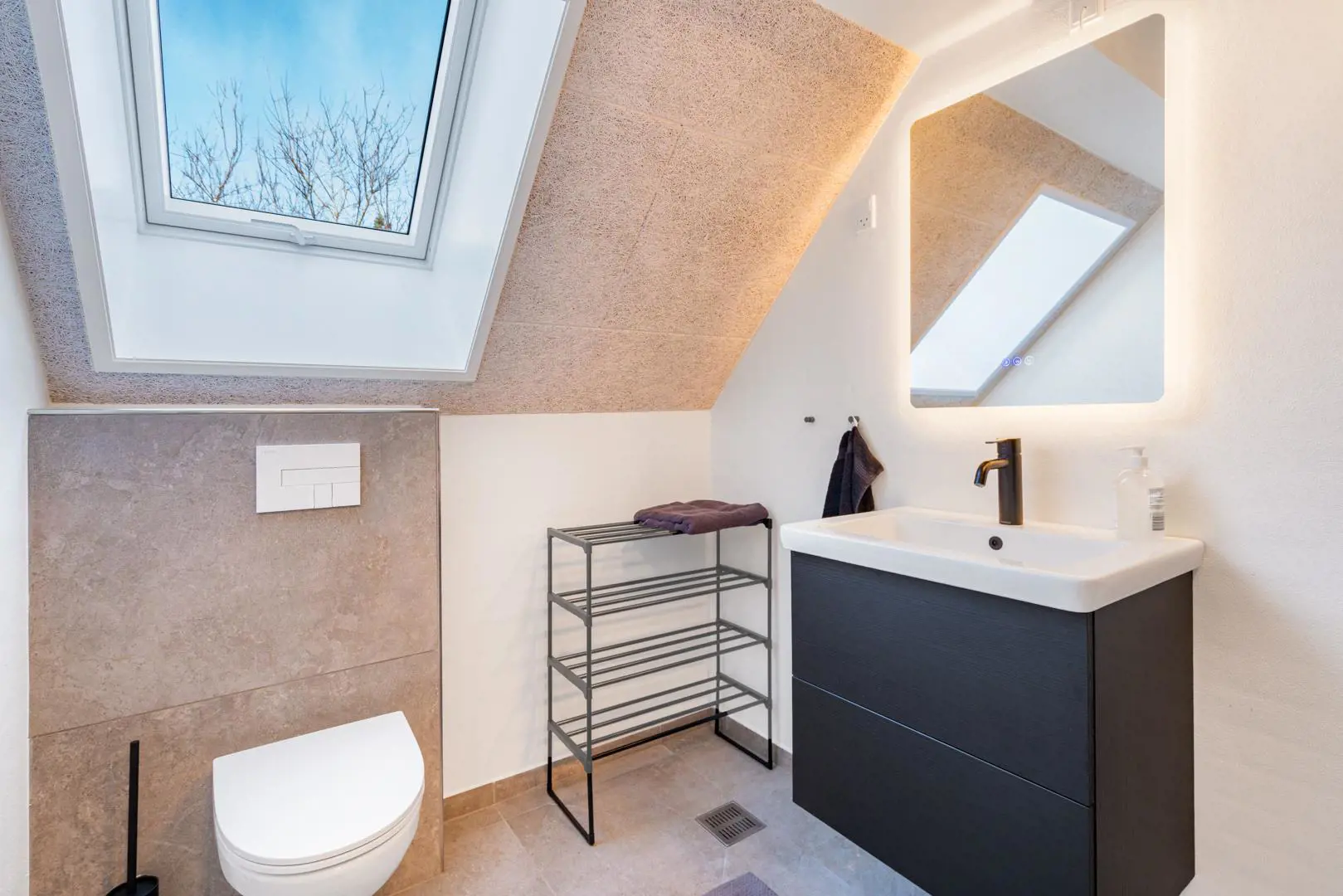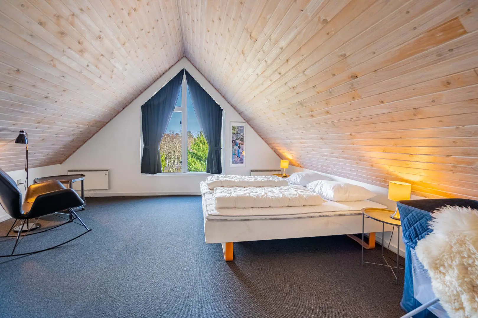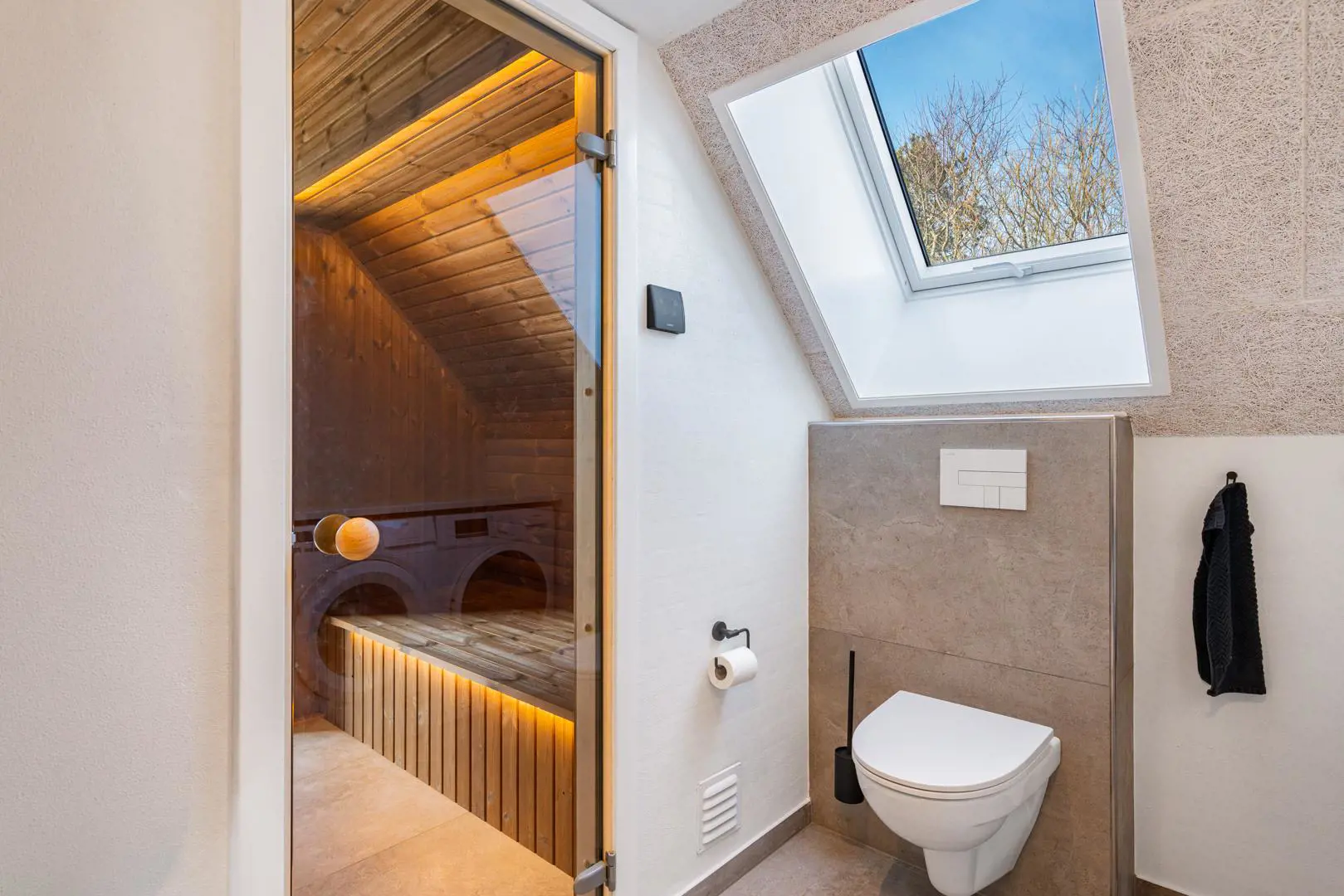 Das Ferienhaus verfügt über 5 Schlafzimmer und 2 moderne Badezimmer mit Fußbodenheizung, sodass auch größere Familien oder Freundesgruppen ausreichend Platz haben. Ein besonderes Highlight ist die Sauna, von der du ebenfalls direkt auf die Terrasse gelangst.