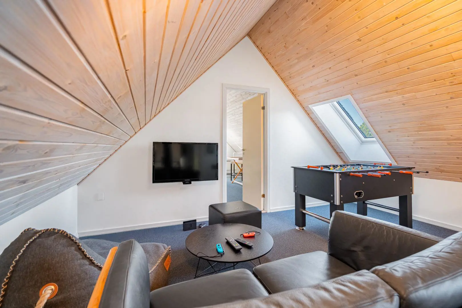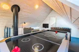 Für Unterhaltung bei jedem Wetter sorgt der Aktivitätsbereich mit Airhockey, Tischfußball und Spielkonsole – perfekt für spannenden Duelle oder entspannte Spieleabende.