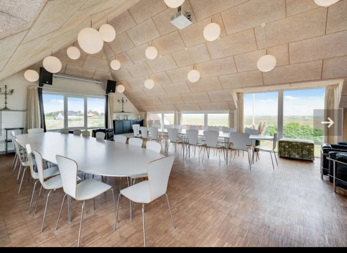 Die Ausstattung macht es einfach, größere Veranstaltungen zu organisieren. Hier finden Sie einen großzügigen Festsaal und einen Aufenthaltsraum mit Platz für alle 38 Gäste sowie einen Panoramablick über den Ringkøbing Fjord. Die große Industrieküche bietet optimale Möglichkeiten zur Zubereitung von Mahlzeiten für viele Personen und ist unter anderem mit einem Gefrierschrank von über 300 Litern ausgestattet.
