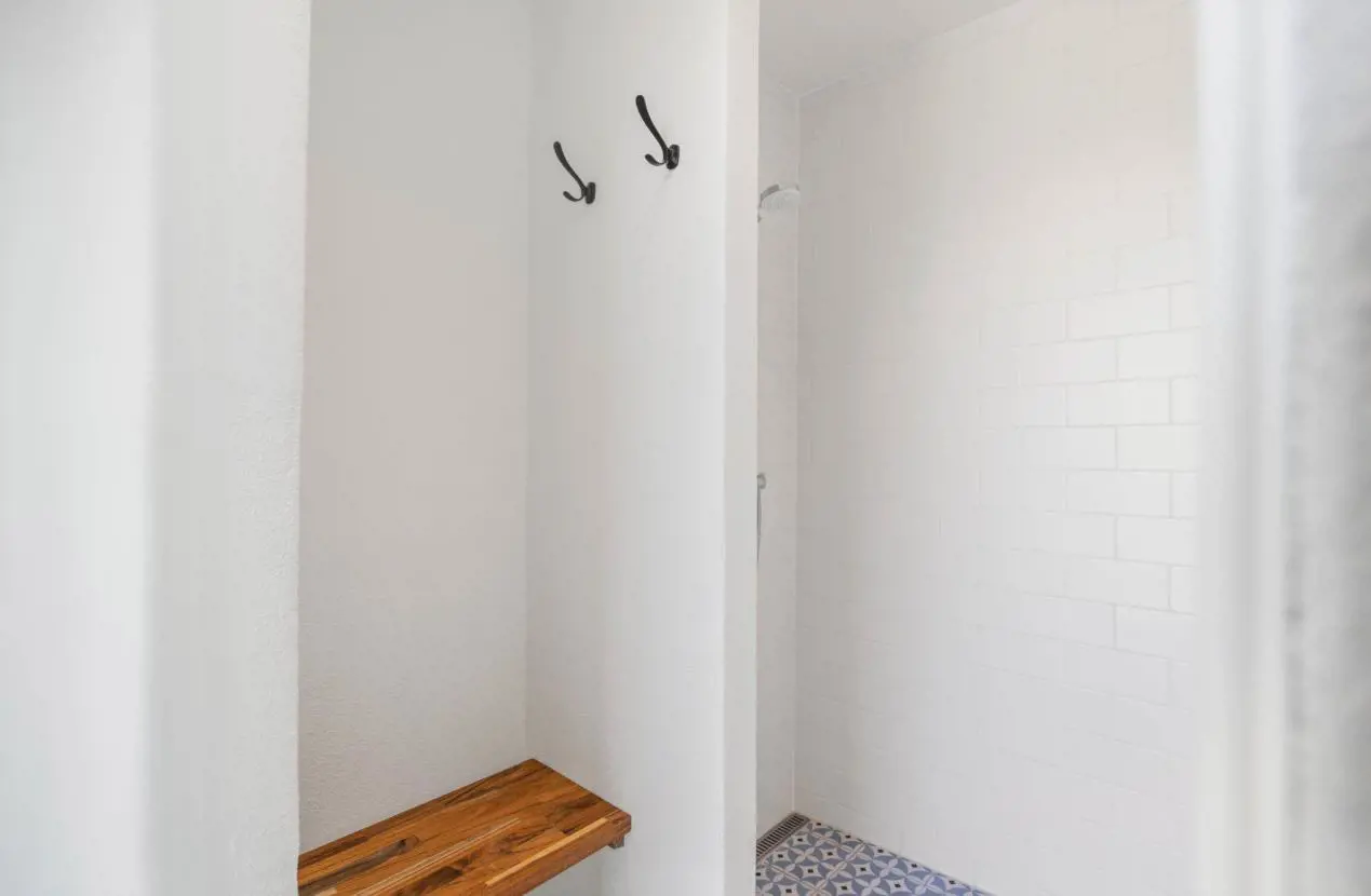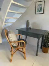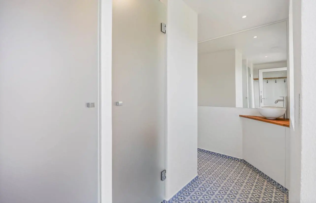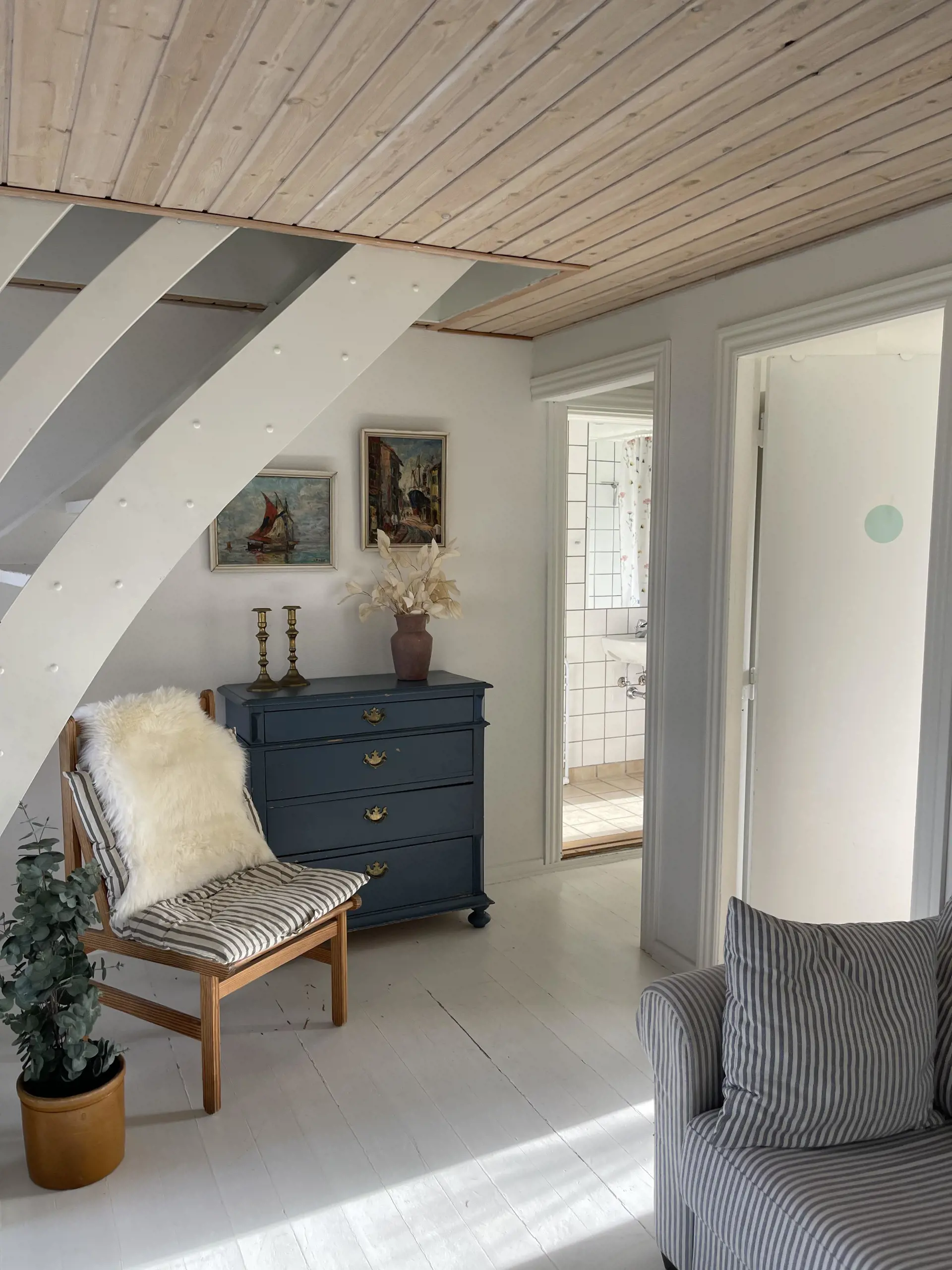Als besonderer Luxus bietet das Pfarrhaus einen Wellnessbereich mit großem Whirlpool und Sauna – perfekt zur Entspannung nach einem Tag am Meer. Hier befindet sich auch eine kleine Küchenzeile, ideal für schnelle Mahlzeiten oder Snacks.