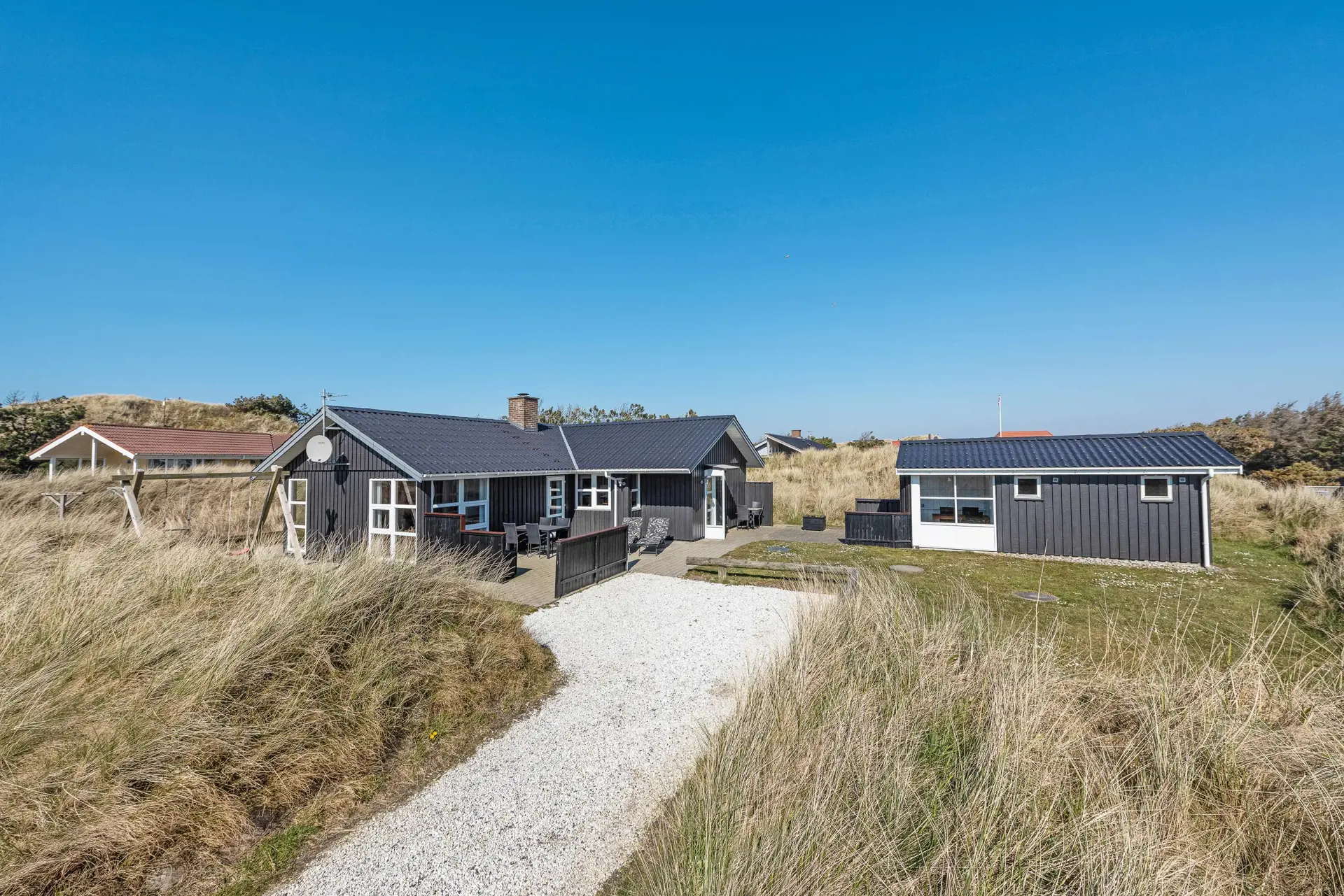Nur knappe 300 Meter trennen euch vom herrlichen Strand. Nehmt eure Liebsten bei der Hand und lauft durch das schöne Dünengebiet bis hin zum Meer. Jeden Tag gibt es hier etwas Neues zu entdecken und wer gern wandert, geht einfach am Rande des Wassers bis hinauf nach Hvide Sande. Hier könnt ihr euch mit einem leckeren Softeis oder einer Tasse frisch gebrühten Kaffees belohnen - verdient habt ihr es euch auf jeden Fall.