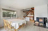 Der Holzofen im Wohnzimmer wird nach einem erfrischenden Spaziergang am Meer zum gemütlichen Treffpunkt. Neben dem Holzofen gibt es auch eine Wärmepumpe, die das ganze Jahr über für eine angenehme Temperatur sorgt.