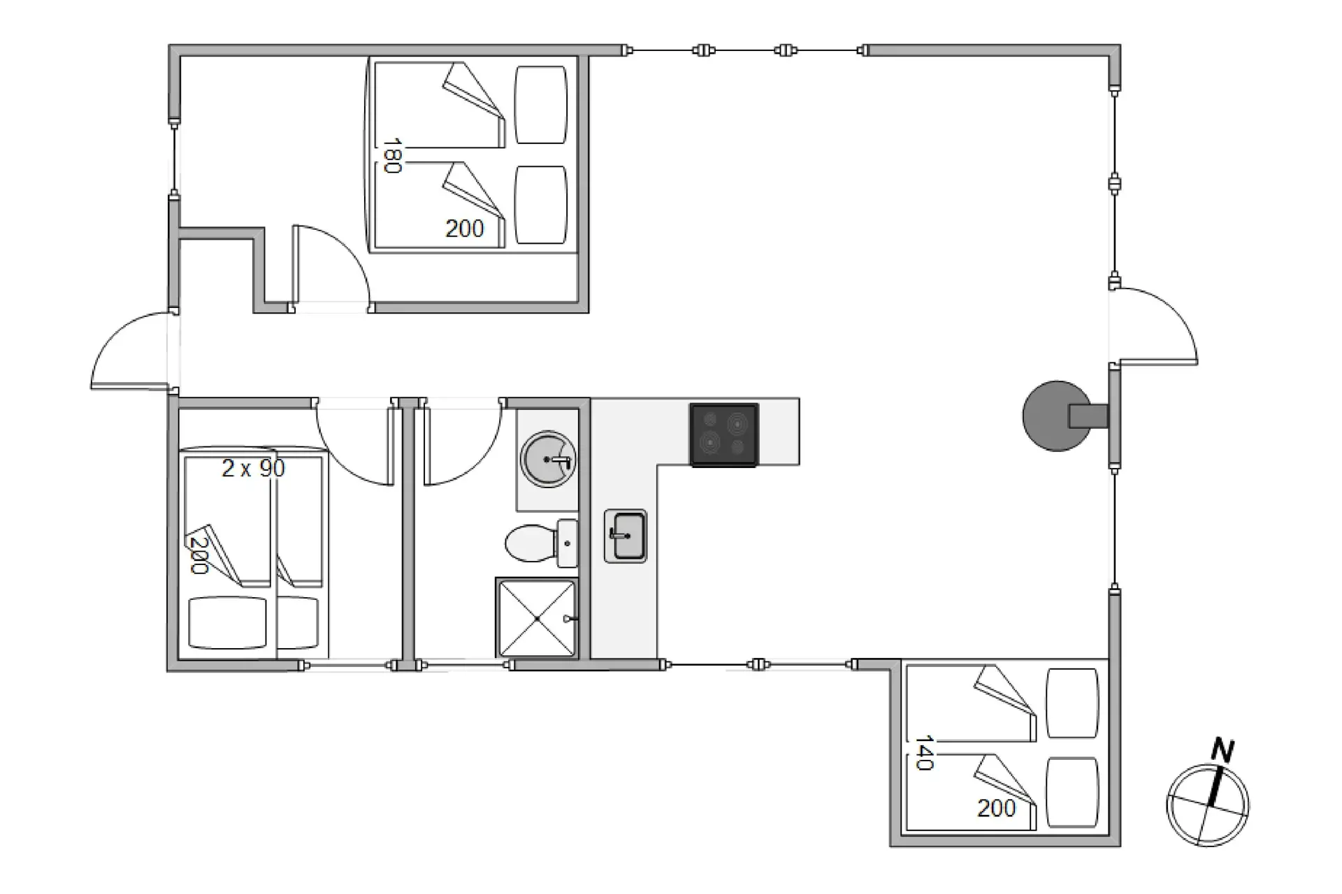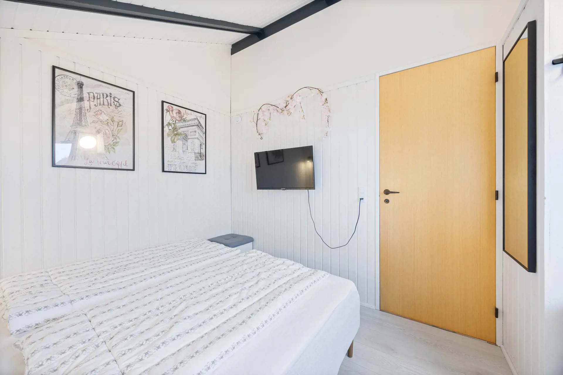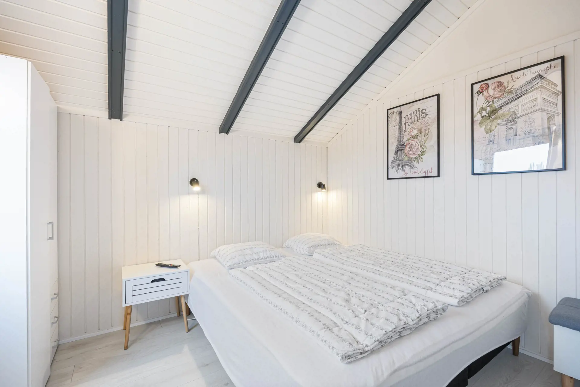 2 Schlafzimmer, ausgestattet mit 1 Doppelbett und 1 Etagenbett und 2 zusätzliche Schlafplätze in der Schlafnische sorgen dafür, dass alle eine bequeme Schlafmöglichkeit finden. Das Badezimmer macht den Aufenthalt noch angenehmer, mit Fußbodenheizung und einer erfrischenden Außendusche.